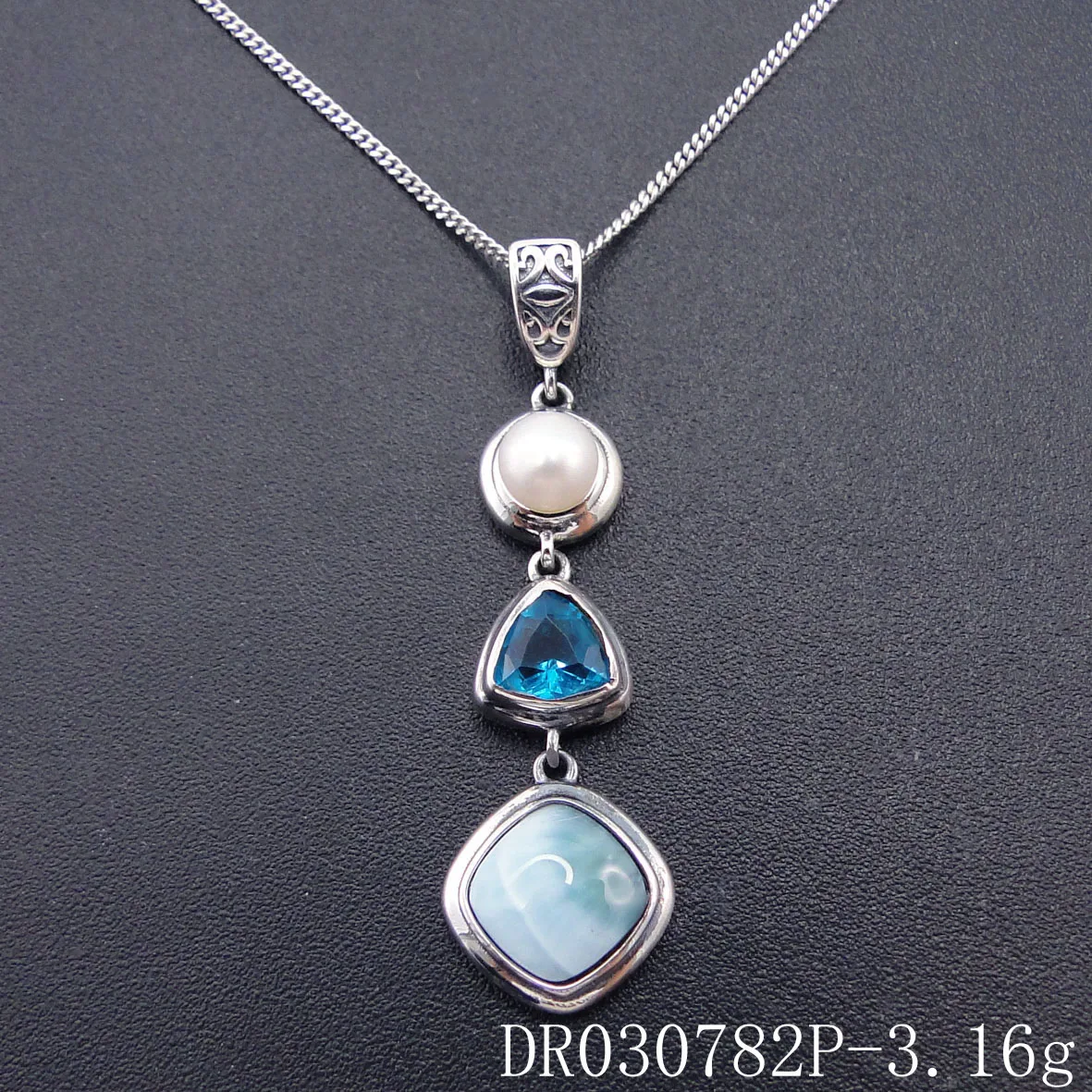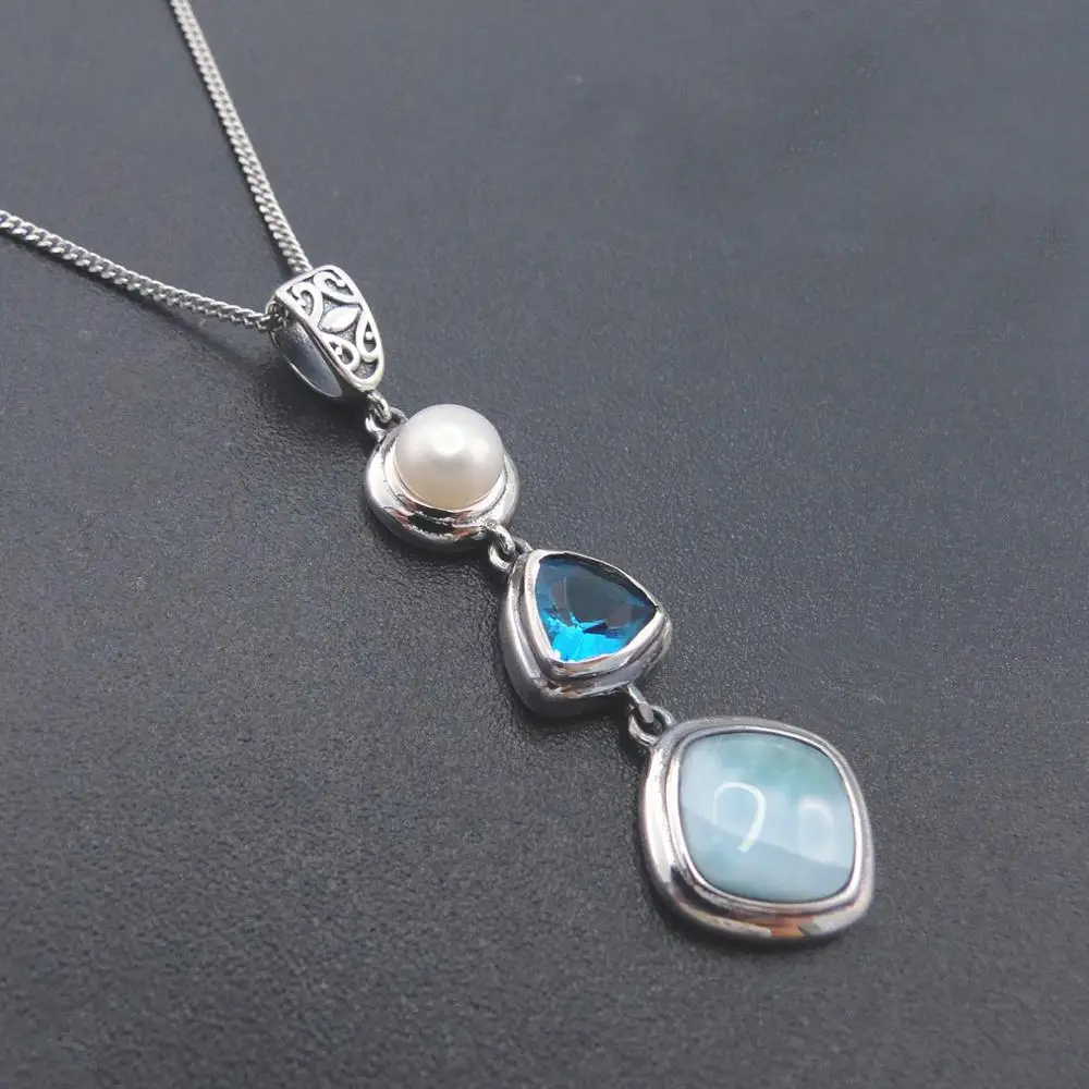 Special Offer Handmade Unique 925 Sterling Silver Pendant, Beautiful Natural Blue Caribbean Larimar Pearl Pendant for Women Ladies Girls Discount 0% Today!