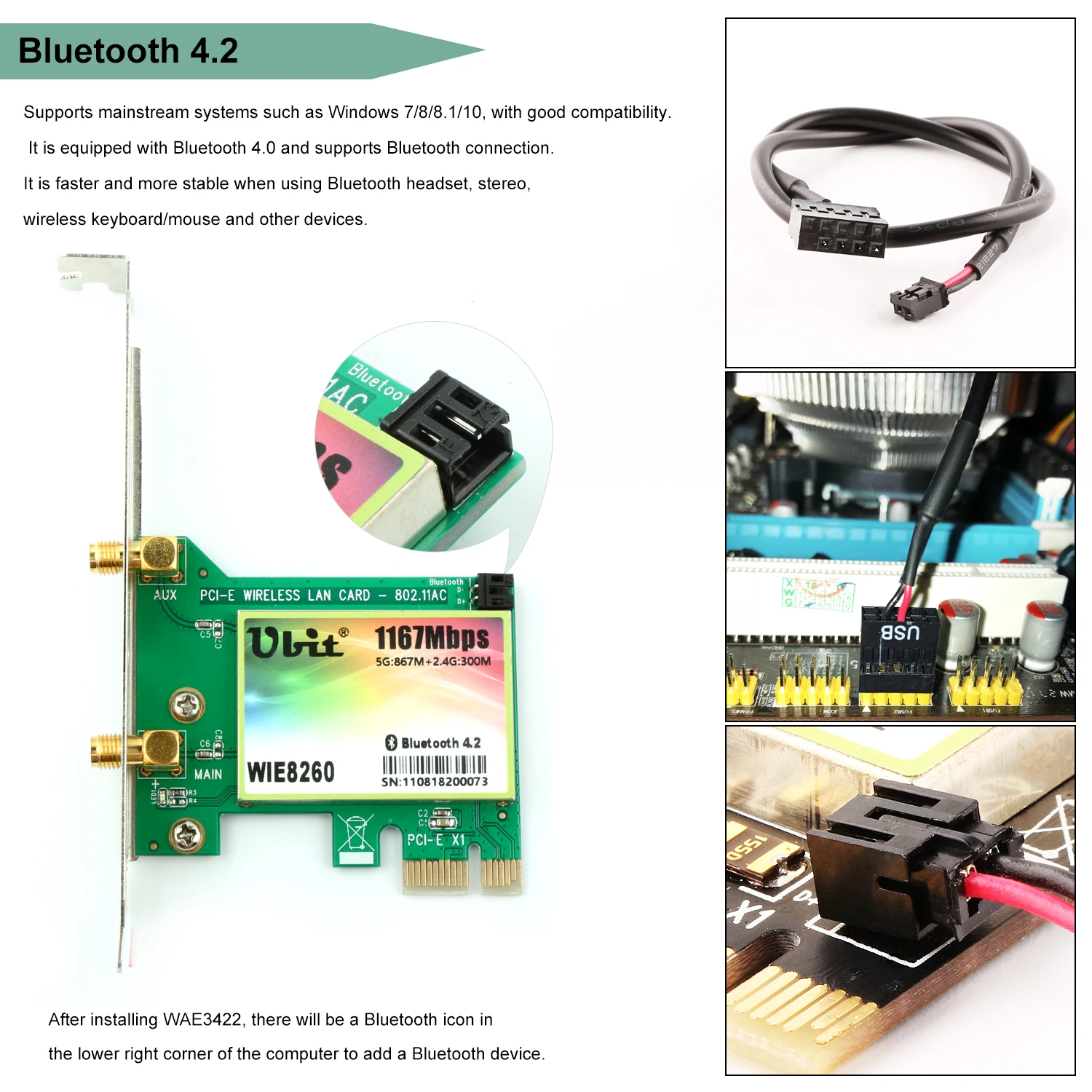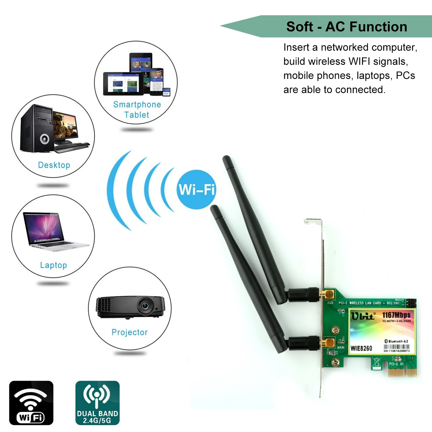 Best . (0% Off) Buy Ubit AC 1167Mbps 8260 Bluetooth 4.2 Wireless Network Card, 802.11 wifi Card ,5Ghz 867Mbps 2.4Ghz 300Mbps Network Card for PC Cheap Online.