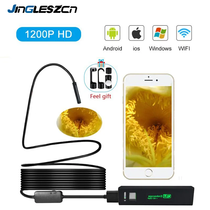 Best . (0% Off) Buy WIFI Endoscope Camera Mini Waterproof Soft Cable Inspection Camera 8mm 1M USB Endoscope Borescope IOS Endoscope For Iphone Price Online.