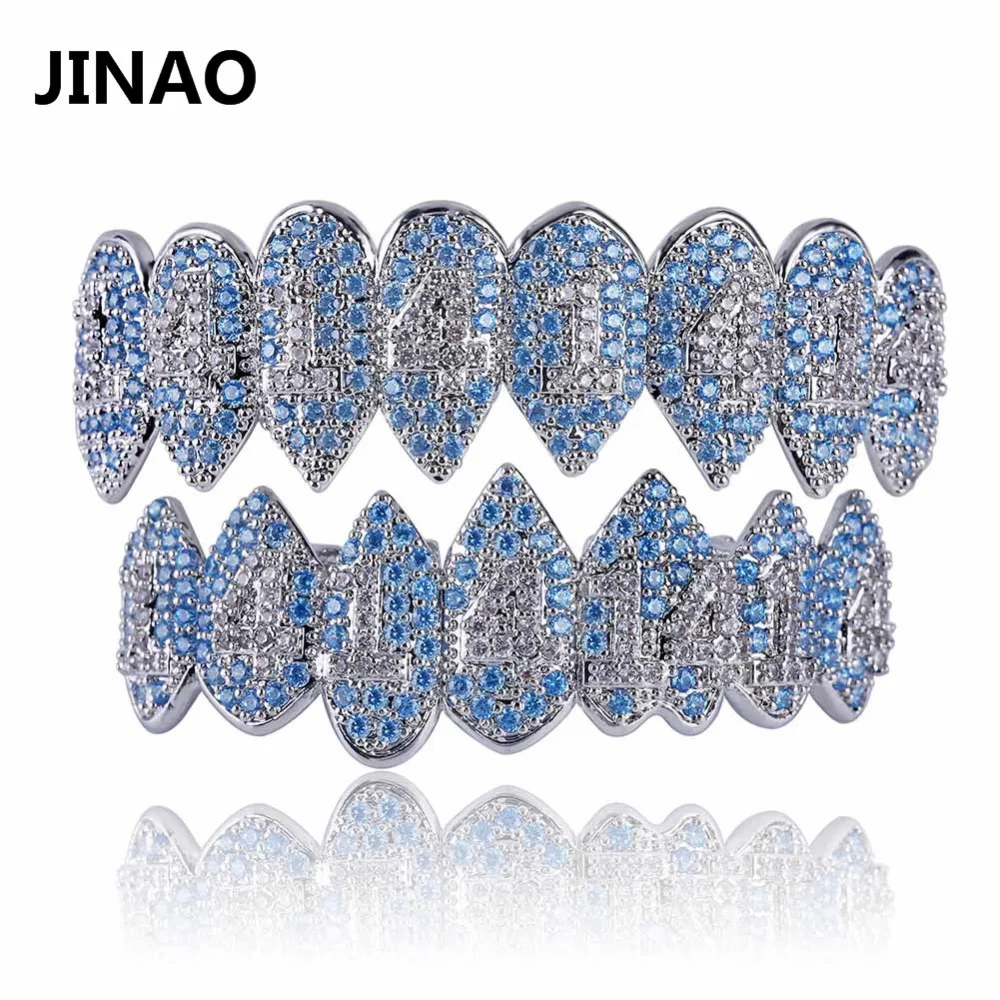 Special Offer JINAO Silver Iced Out 1414 Grillz Cooper Crystal Jewelry Top Bottom Grillz Teeth Body Jewelry Hip Hop Bling AAA Cubic Zircon Discount 20% Today!