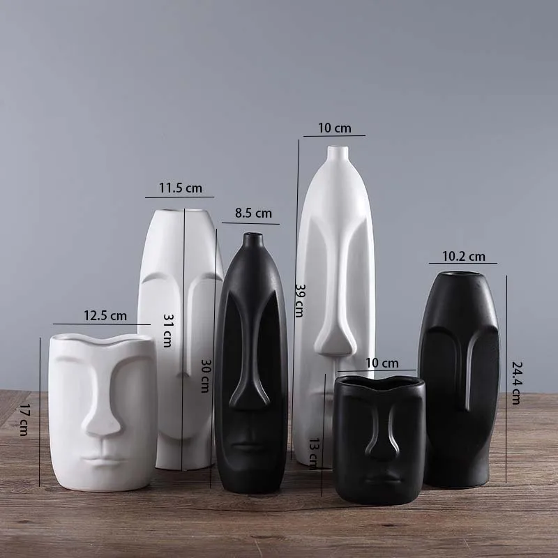 Best . (20% Off) Buy Nordic Minimalist Ceramic Abstract Vase Black and White Human Face Creative Display Room Decorative Figue Head Shape Vase Price Online.