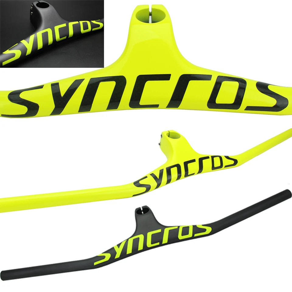Special Offer syn Custom Champion MTB Bicycle Riser 17 degree One shaped Integrated Handlebar With Stem 3K Black Matte Carbon MTB Handlebar Discount 24% Today!