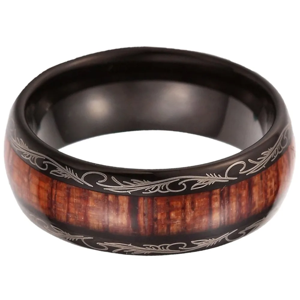 Special Offer 8mm Black Tungsten carbide Ring Koa Wood Inlay Dome Matching Wedding Bands Men s jewelry Discount 29% Today!