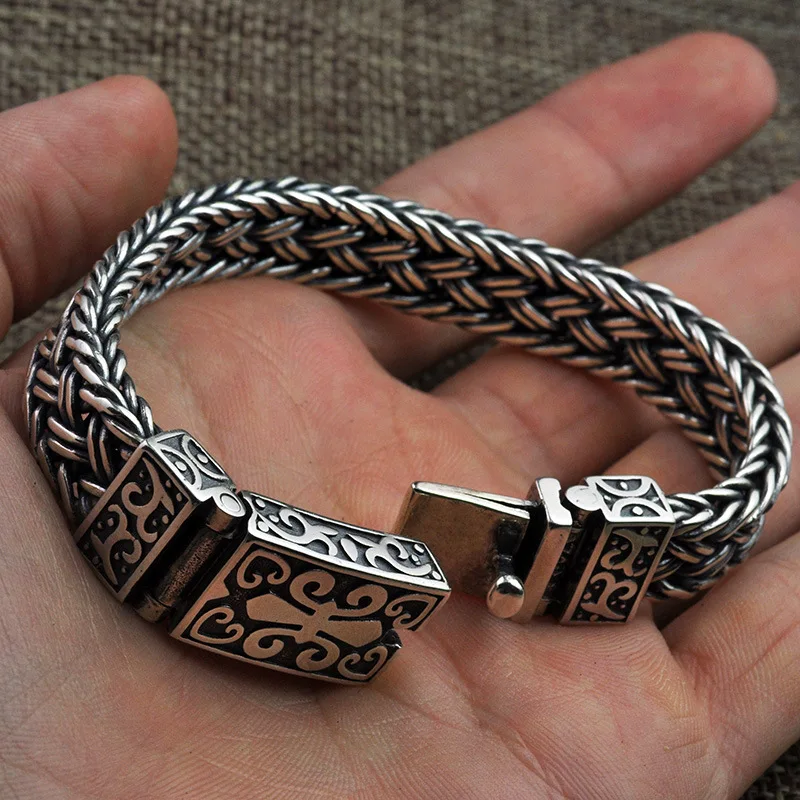Special Offer Real 925 Sterling Silver Bracelet Men s and Women s Wide 11mm Retro Punk Rock Wire Chain Chain and Bracelet Thai Silver Jewelry Discount 30% Today!