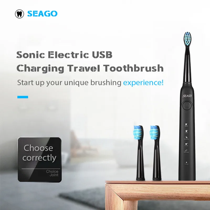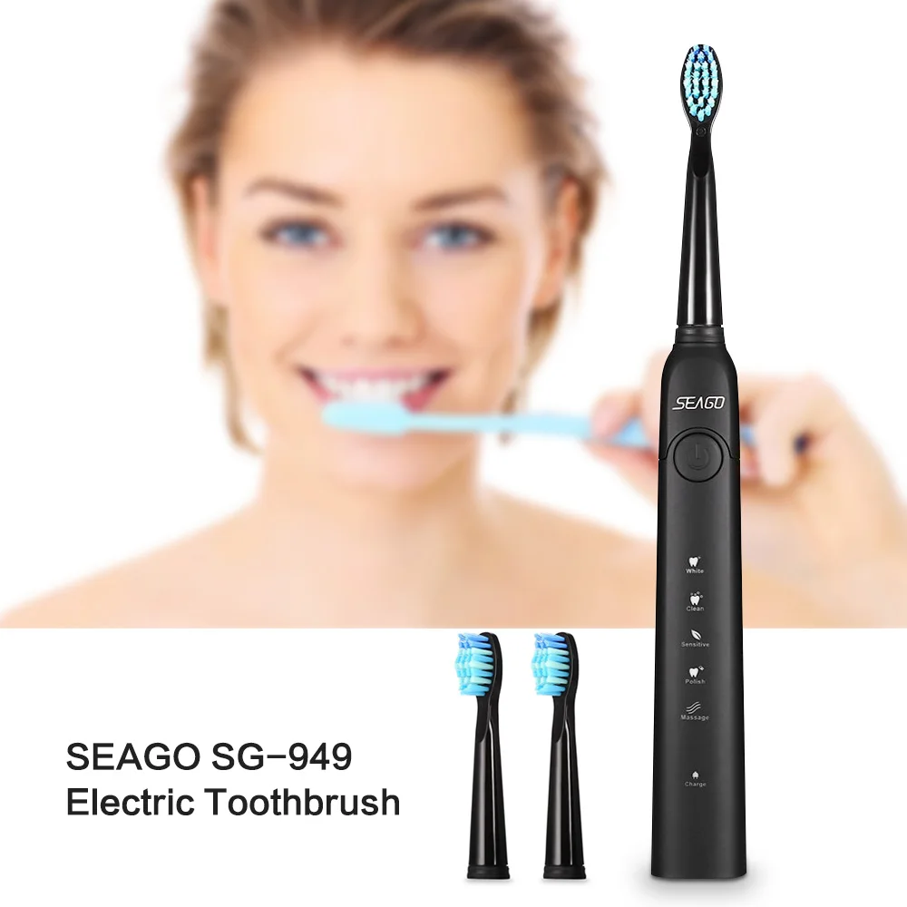 Special Offer SEAGO SG 949 Electric Sonic Toothbrush USB Chargeable Waterproof Electric Toothbrush with 7 Brush Heads Smart Timer Toothbrush Discount 30% Today!