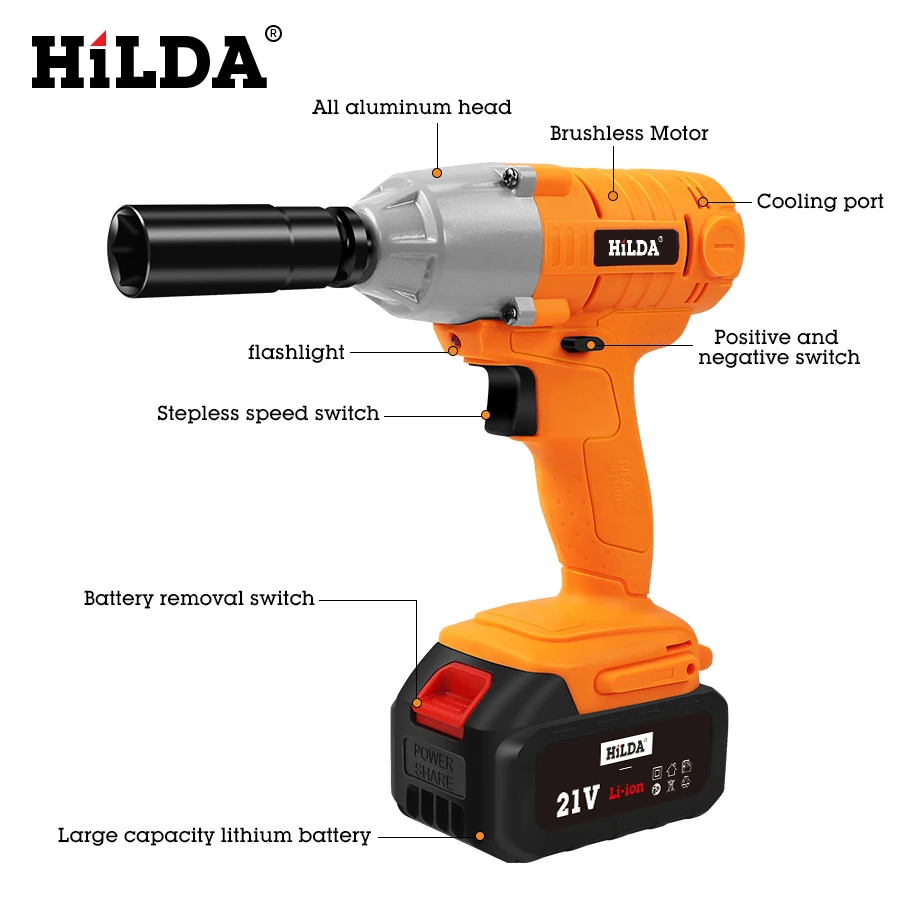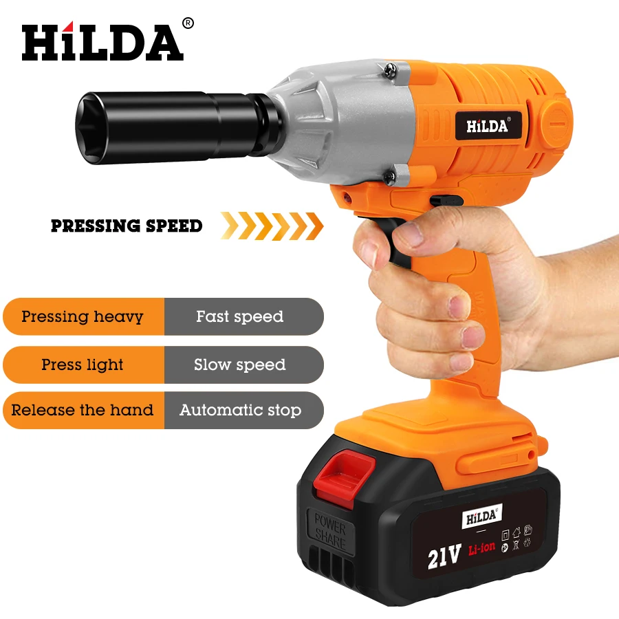 Special Offer HILDA 21V Cordless Impact Electric Wrench Brushless Socket Wrench Hand Drill Installation Power Tools For Car SUV Wheel Discount 31% Today!