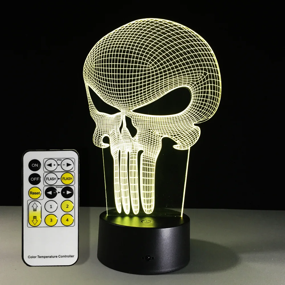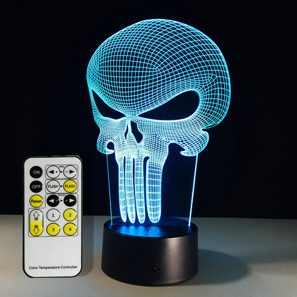 Special Offer Free Shipping 1Piece Punisher Skull Multi colored Bulbing Light Acrylic 3D Hologram Illusion Desk Lamp Discount 43% Today!