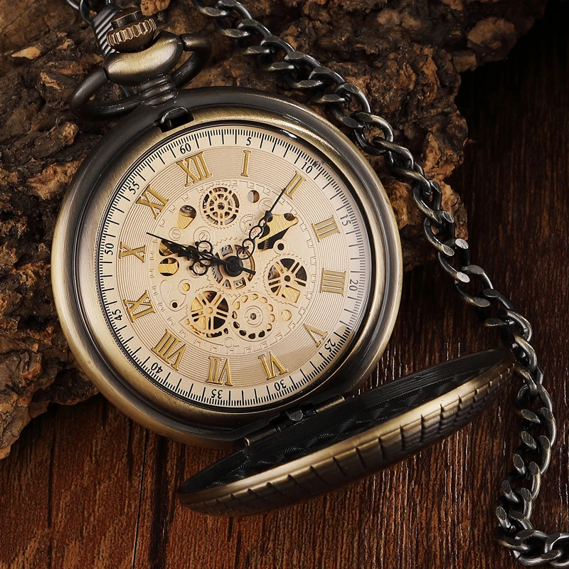 Special Offer Vintage Wood Circle Carved Number Dial Mechanical Pocket Watch Men Unique Hollow Steampunk Bronze Mechanical Clock Watches Chain Discount 45% Today!