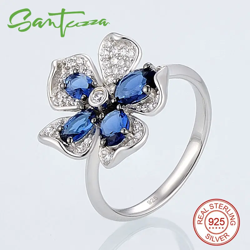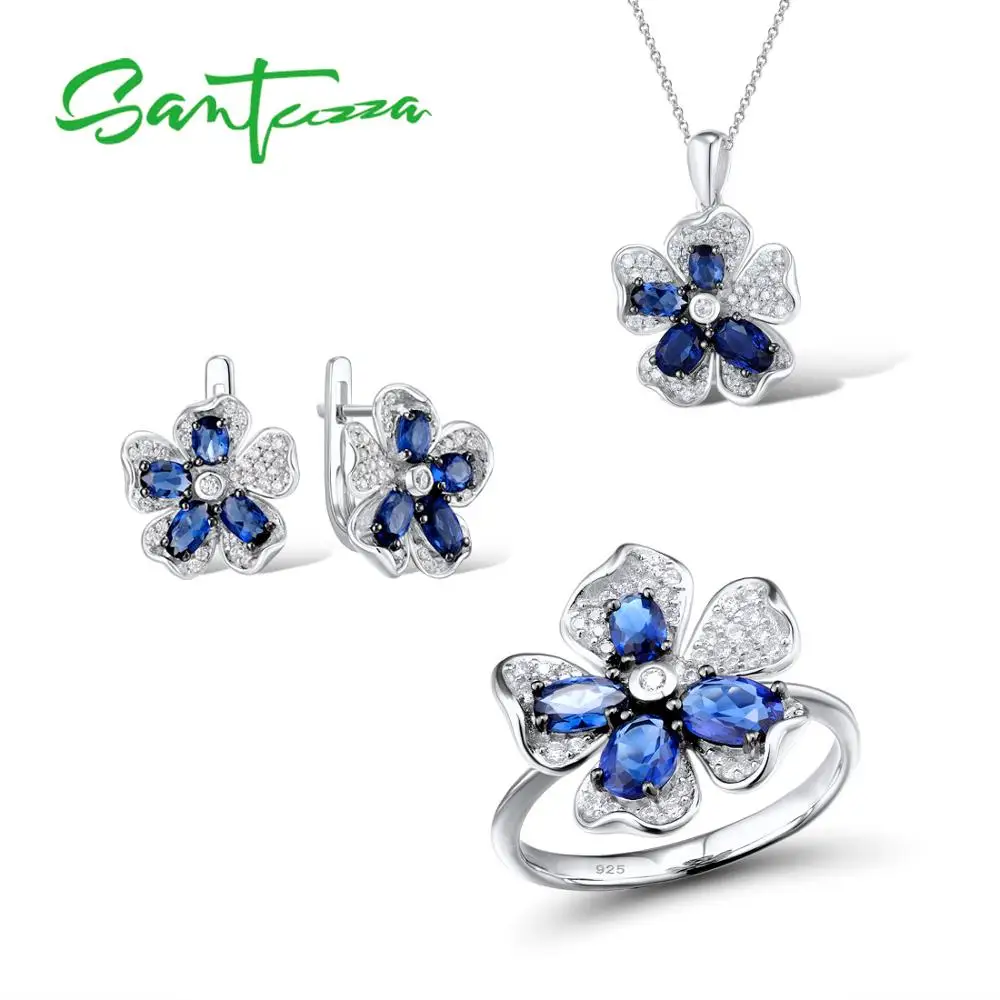 Best . (49% Off) Buy SANTUZZA Silver Flower Jewelry Set Bridal Wedding Blue CZ Stones Ring Earrings Pendant Set 925 Sterling Silver Fashion Jewelry Price Online.