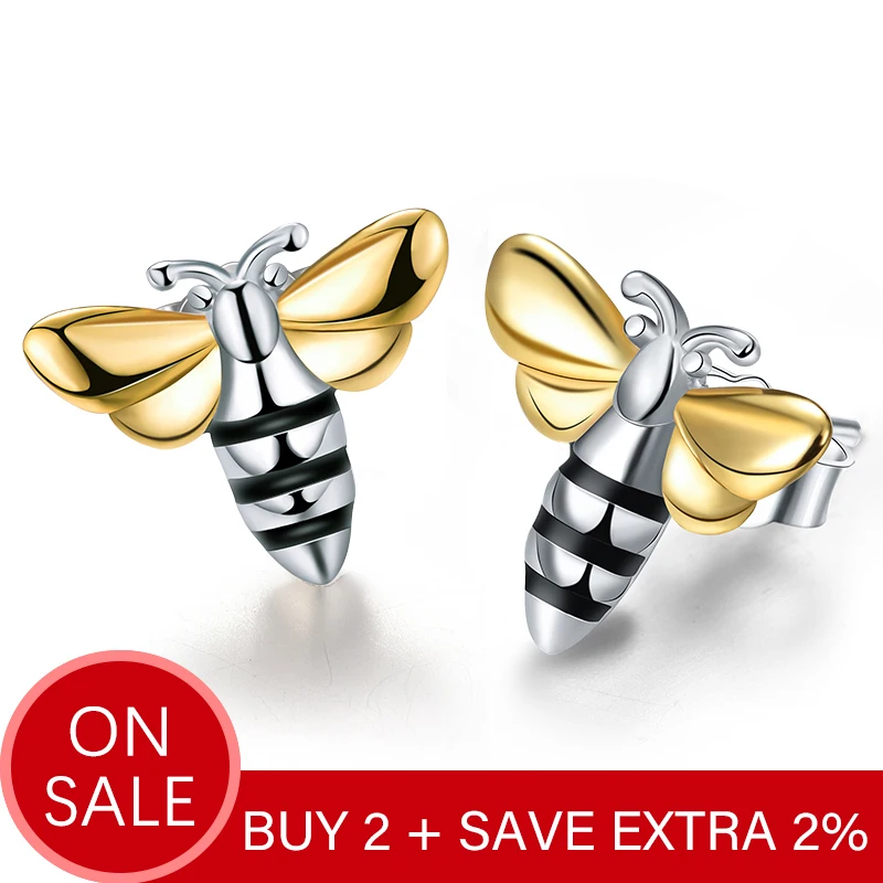 Special Offer Lotus Fun Real 925 Sterling Silver Earrings Designer Fine Jewelry Lovely 18K Gold Honey Bee Stud Earrings for Women Gift Brincos Discount 64% Today!
