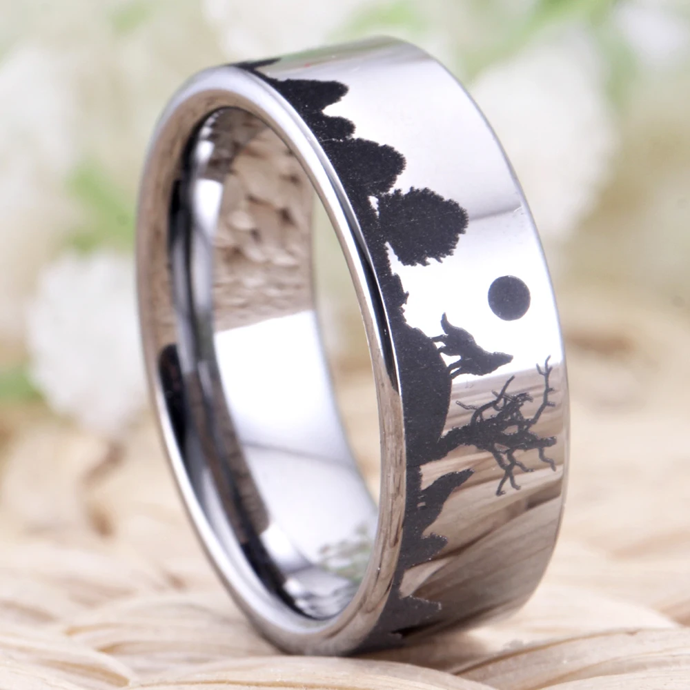 Special Offer Wolf Design Rings For Women Men s Wedding Band 8mm Silver Tungsten Ring Party Jewelry Engagement Ring With Ring Box Drop Ship Discount 10% Today!