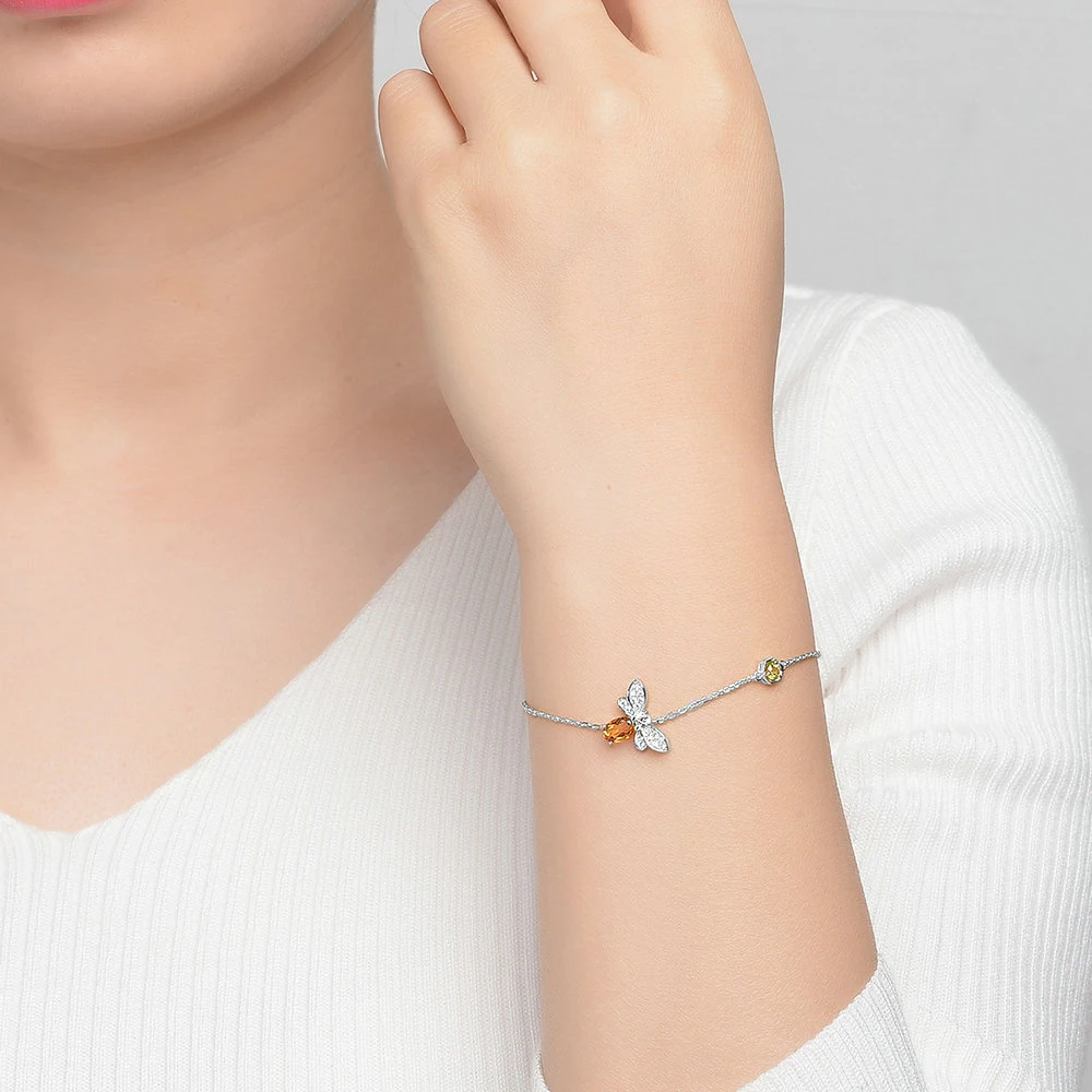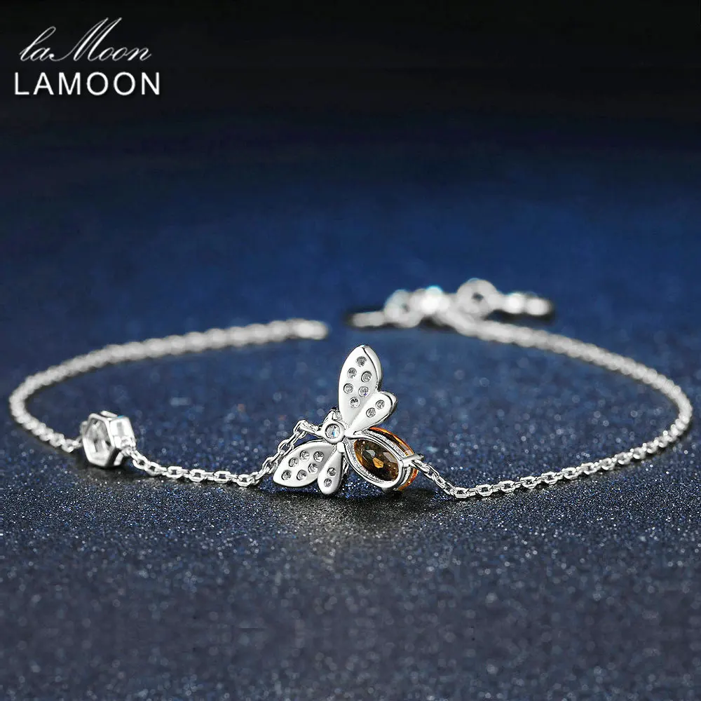Special Offer LAMOON Love Bee 925 Sterling Silver Bracelet Woman Citrine Gemstones Jewelry White Gold Plated Chain Designer Jewellery LMHI059 Discount 40% Today!