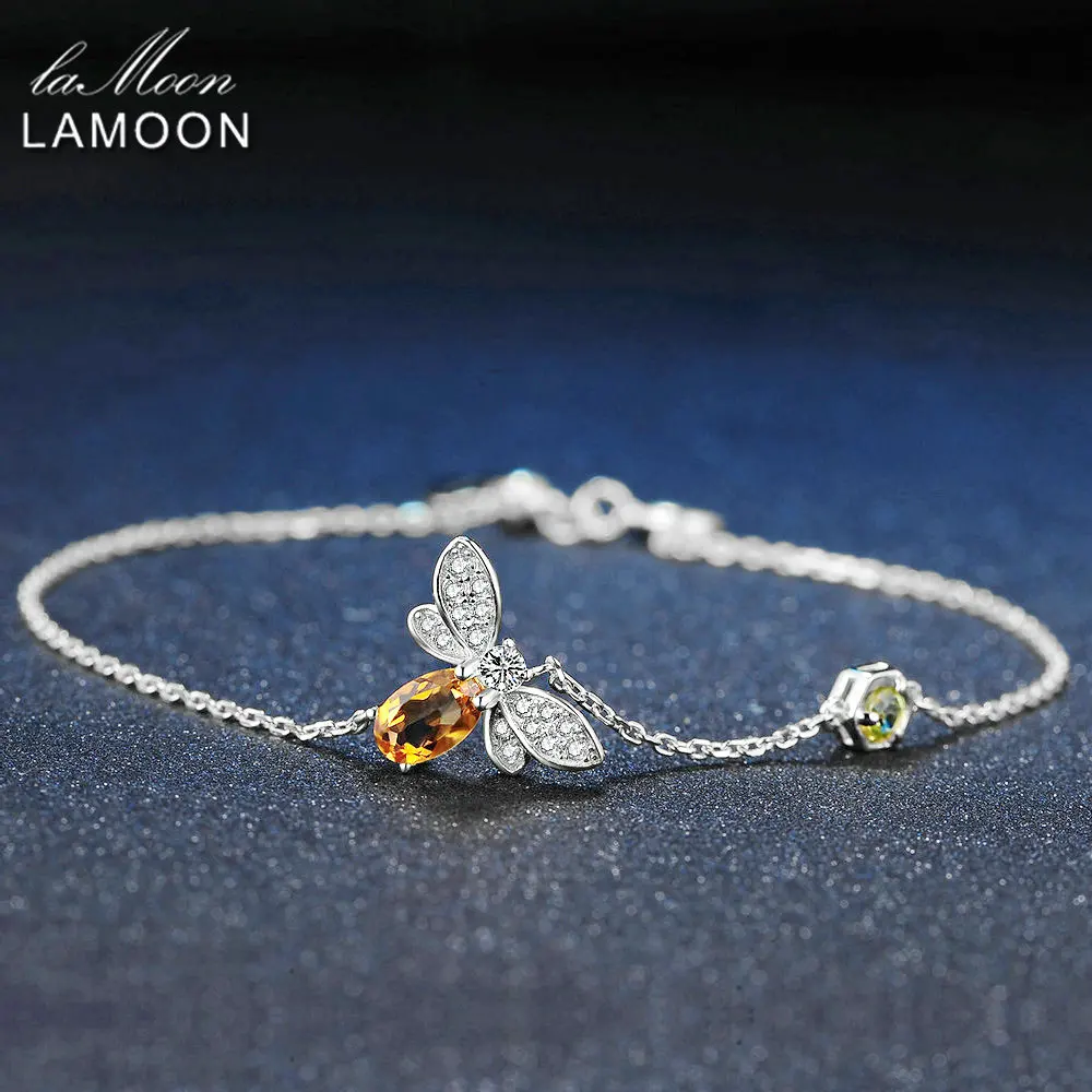 Best . (40% Off) Buy LAMOON Love Bee 925 Sterling Silver Bracelet Woman Citrine Gemstones Jewelry White Gold Plated Chain Designer Jewellery LMHI059 Price Online.