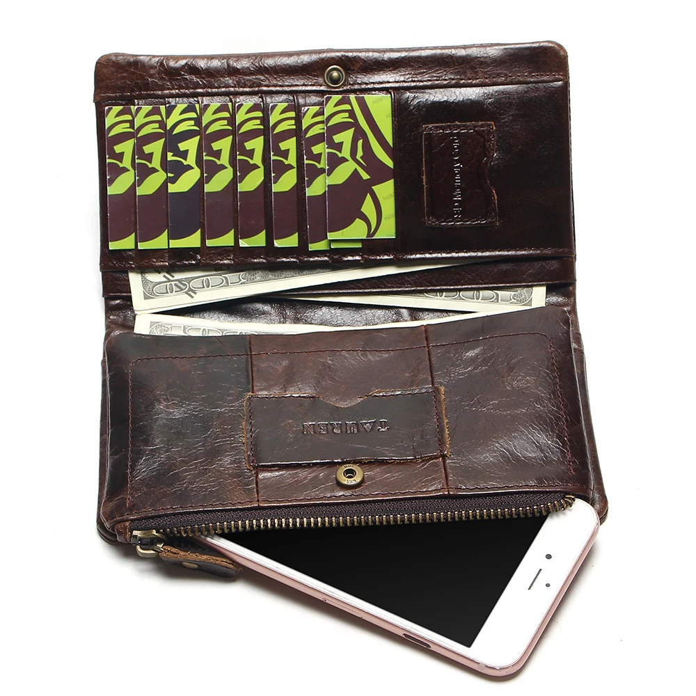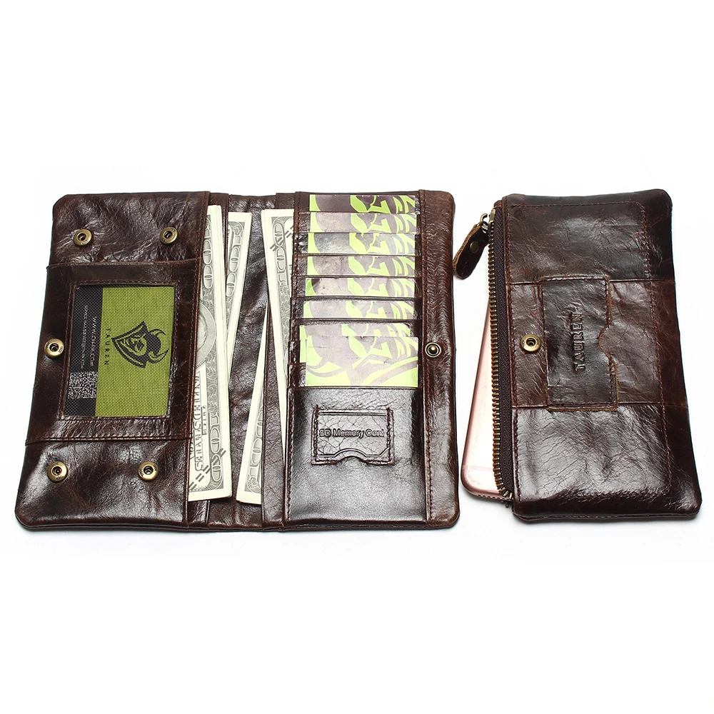 Special Offer The 2019 New First Layer Of Real Leather Men s Oil Wax Retro High Capacity Multi Card Bit Long Wallet Clutch Men Genuine Discount 43% Today!