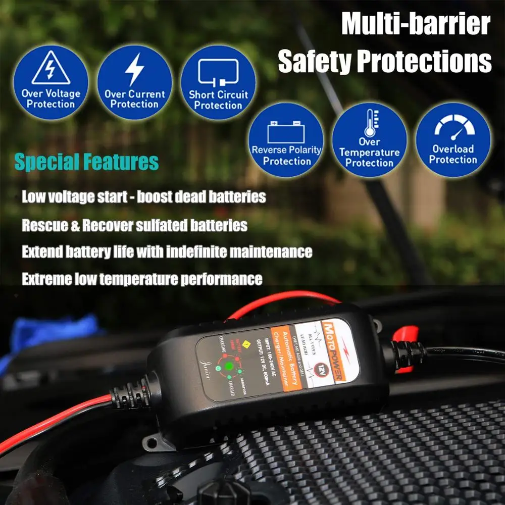 Best . (48% Off) Buy MOTOPOWER MP00205A 12V 800mA Automatic Smart Motorcycle Battery Charger Maintainer for Car, RV, ATV, Boat Price Online.