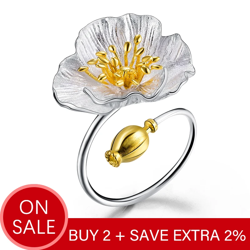 Best . (55% Off) Buy Lotus Fun Real 925 Sterling Silver Adjustable Ring Handmade Designer Fine Jewelry Blooming Poppies Flower Rings for Women Bijoux Price Online.