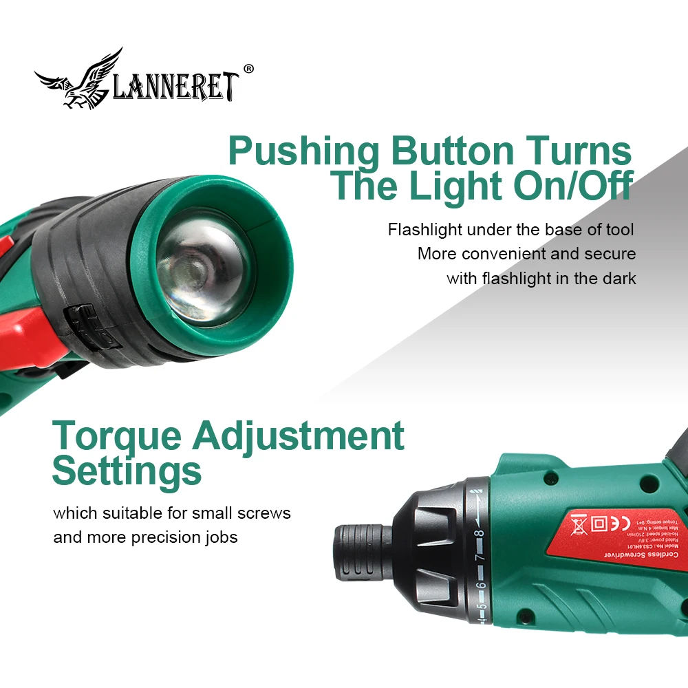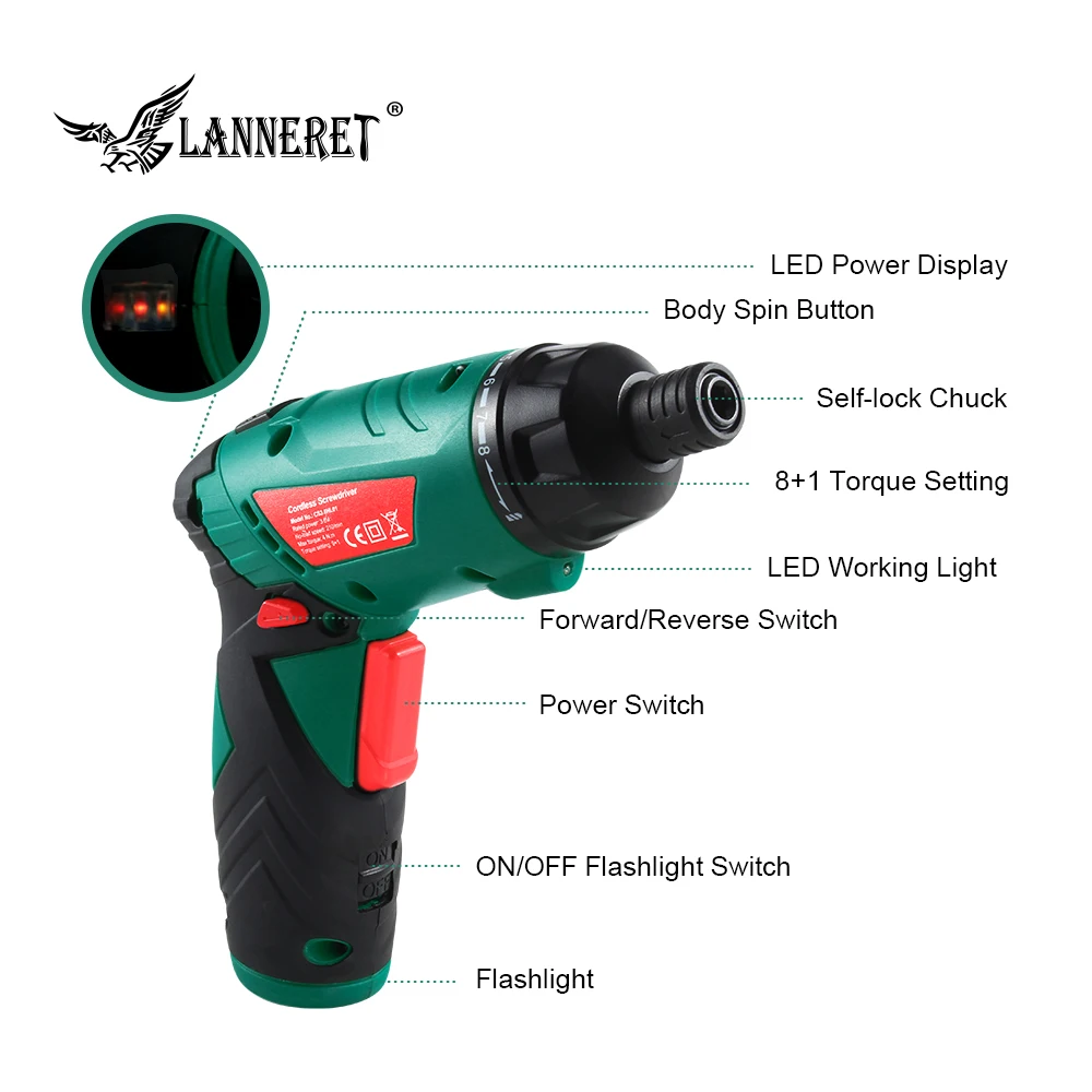 Special Offer LANNERET 3.6V Lithium Ion Cordless Electric Screwdriver Household Multifunction Drill Driver Power Gun Tools LED Light Discount 39% Today!