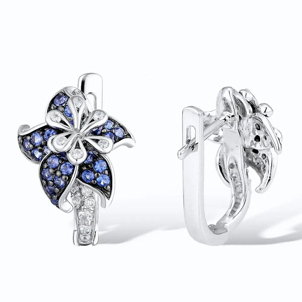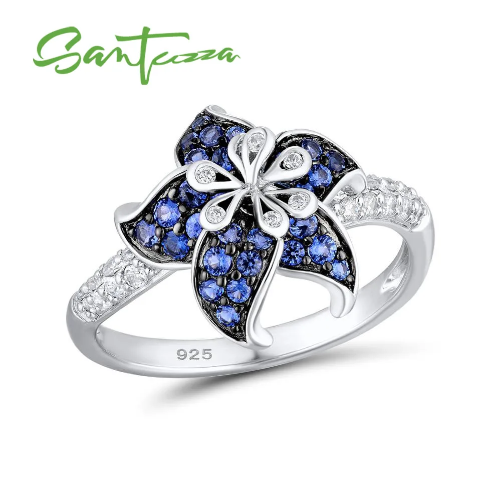 Special Offer SANTUZZA Silver Jewelry Set For Woman Authentic 925 Sterling Silver Blue Star Flower White CZ Ring Earrings Set Fashion Jewelry Discount 49% Today!