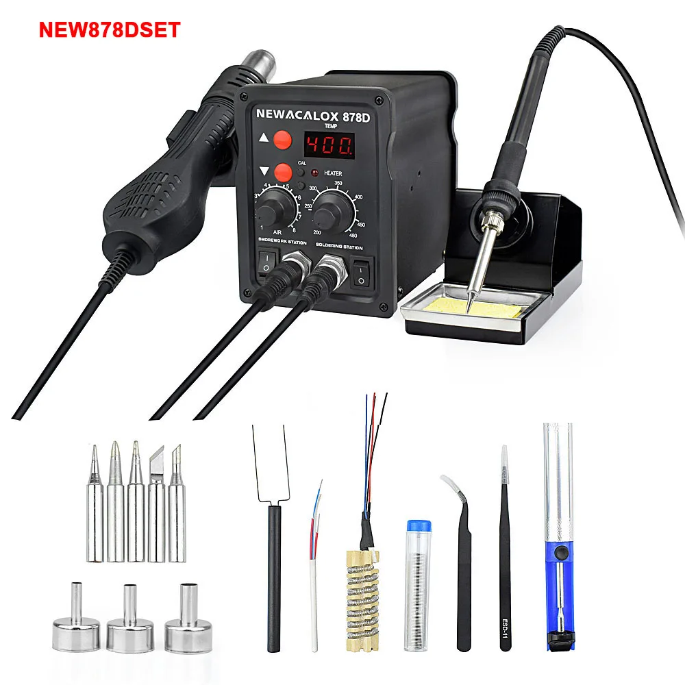 Best . (50% Off) Buy NEWACALOX EU US 8786 878D Soldering Station 750W Heat Gun 60W Soldering Iron Digital Adjust 2 In 1 SMD Rework Welding Station Price Online.