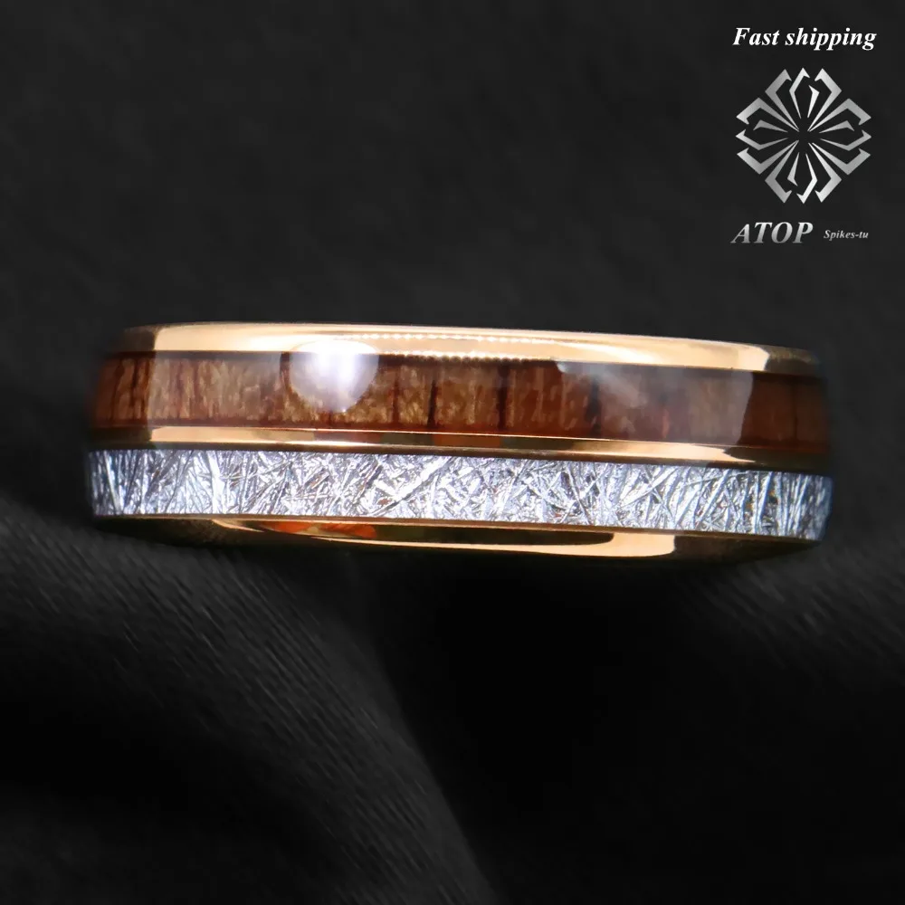 Special Offer 8mm Rose Gold Dome Tungsten Ring Silver Koa Wood Inlay Bridal ATOP Men Jewelry Discount 0% Today!