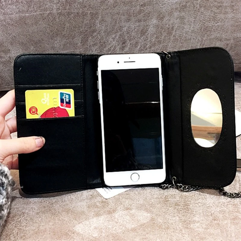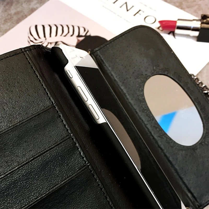 Best . (10% Off) Buy Aoweziic Luxury folding mirror card wallet leather case For iphone 11 pro max X XS MAX XR Case 8 7plus cover crossbody chain bag Cheap Online.