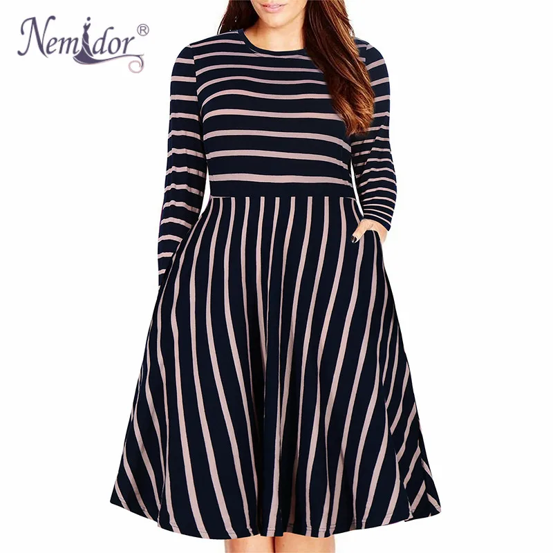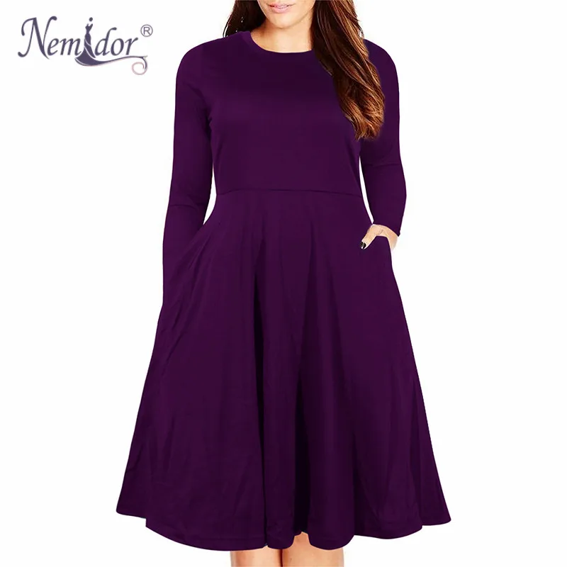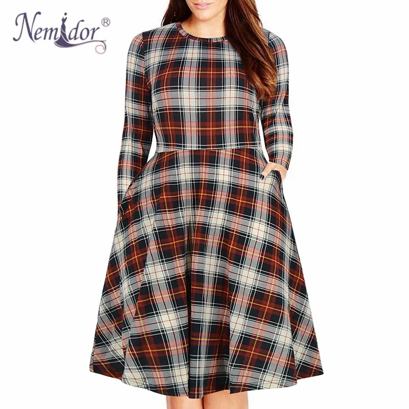 Special Offer Nemidor Women Casual O neck Short Sleeve 50s Party A line Dress Vintage Print Midi Plus Size 8XL 9XL Swing Dress With Pockets Discount 12% Today!