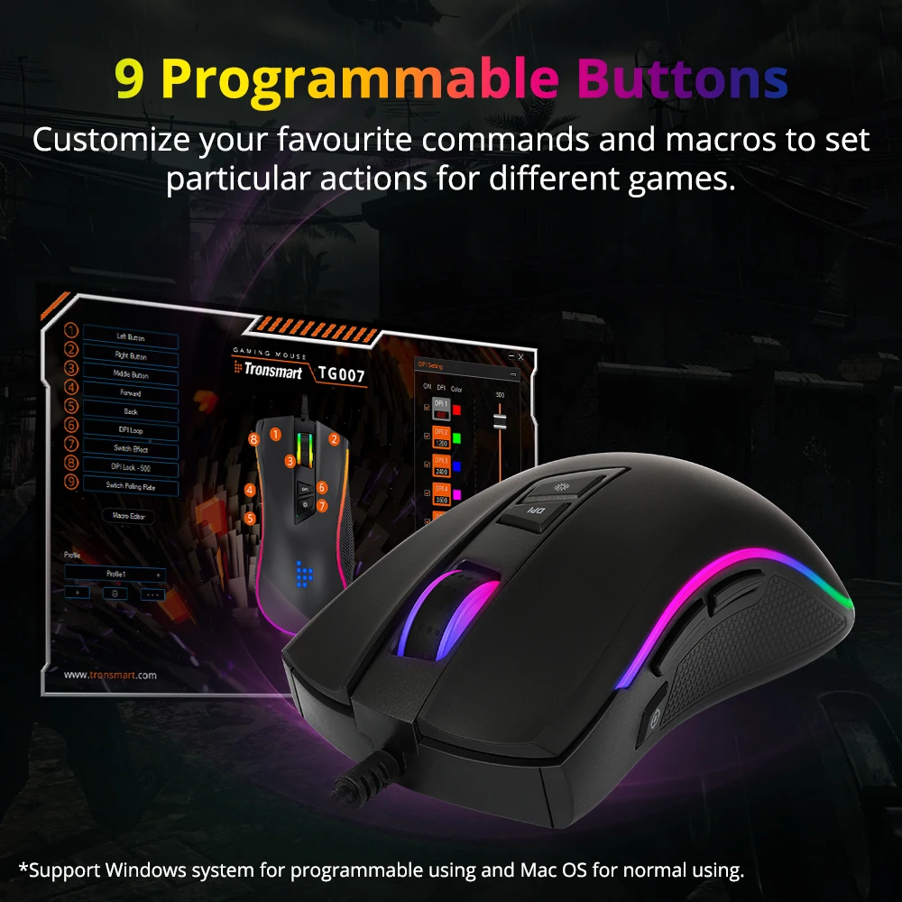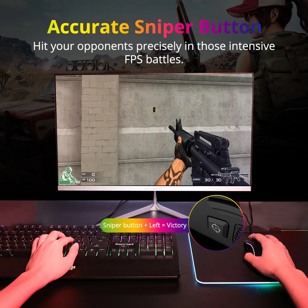 Special Offer Tronsmart TG007 Wired Gaming Mouse Gamer Computer Mouse with 16.8 Million RGB,9 Programmable Buttons,7200 DPI Sniper Button Discount 20% Today!