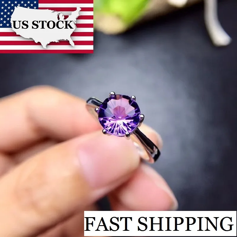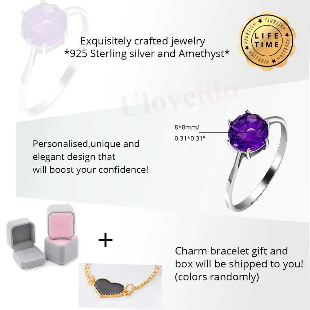 Special Offer US STOCK Uloveido Amethyst Solitaire Ring, 925 Sterling Silver, 8*8mm Certified Purple Gemstone Wedding Jewelry Women FJ201 Discount 20% Today!
