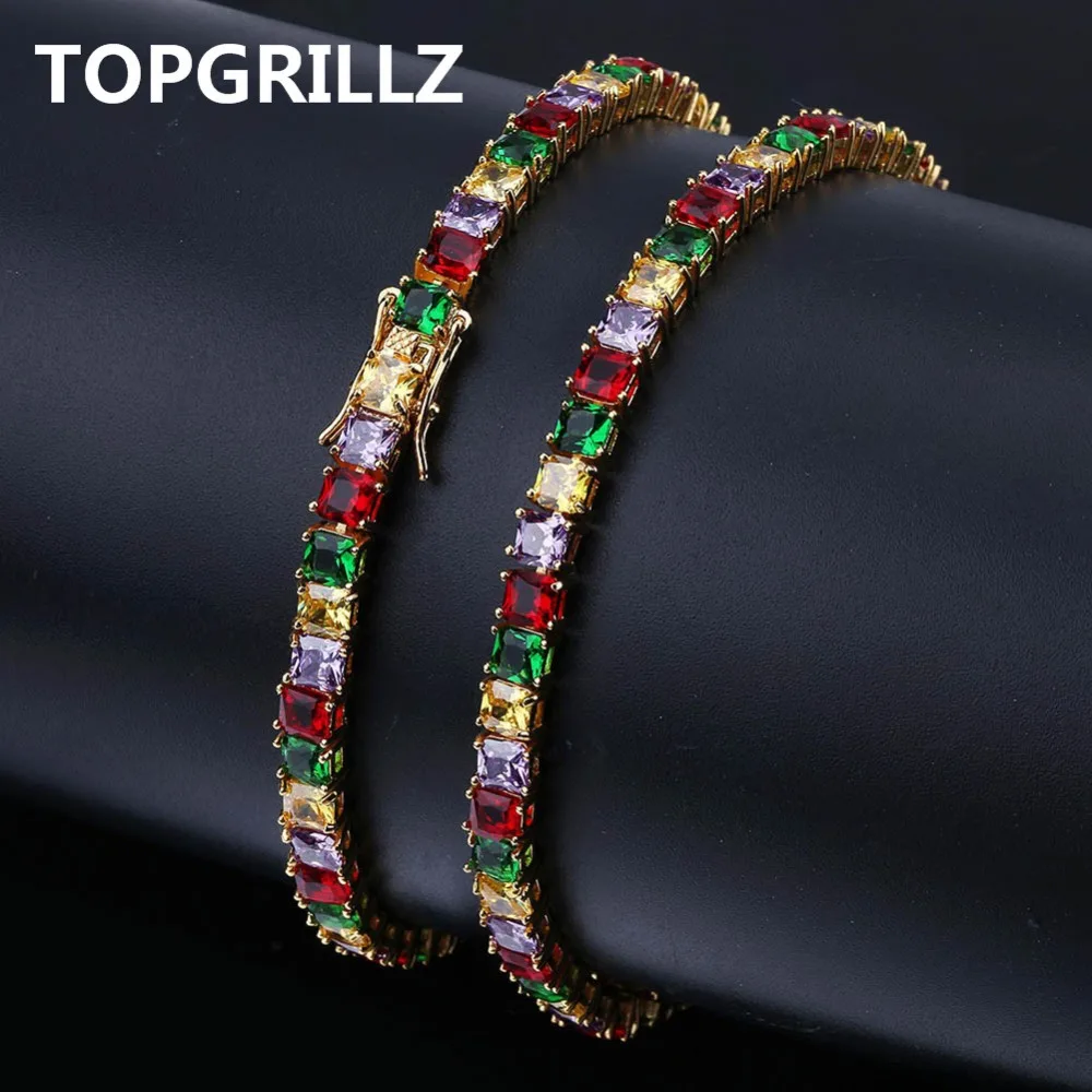 Special Offer TOPGRILLZ Hip Hop Gold Silver Color Plated Iced Out Micro Pave AAA CZ Stone Colorful Tennis Chain Bracelet For Men Women Gifts Discount 25% Today!