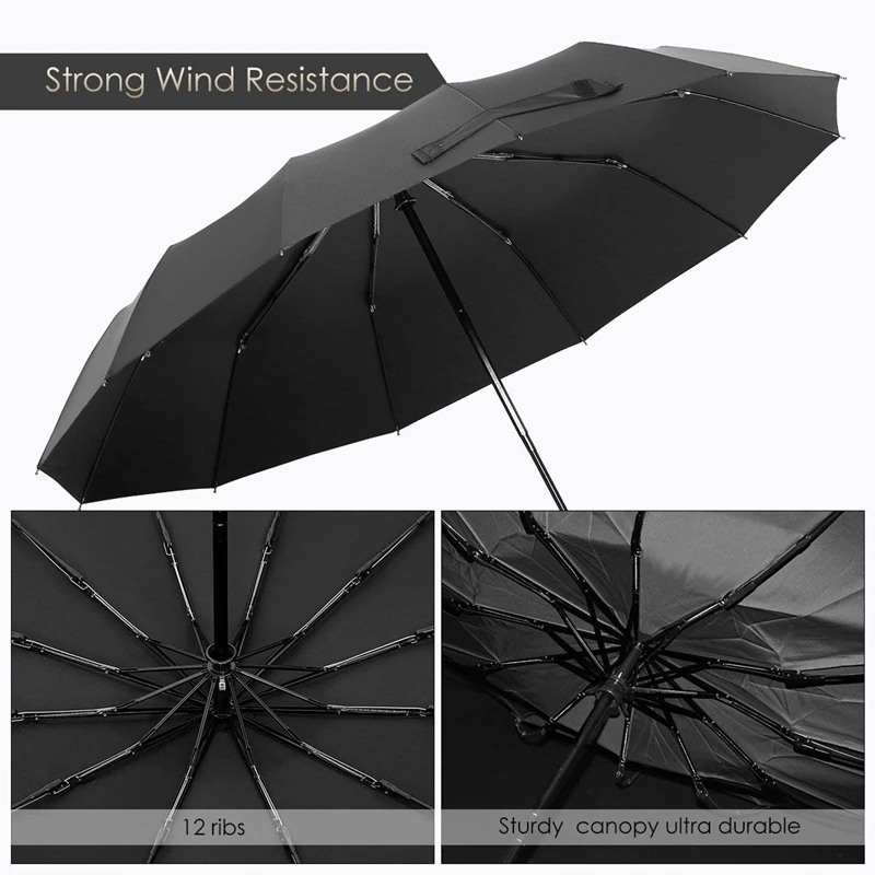 Special Offer 12 Ribs Windproof Travel Umbrella With Teflon Canopy, Lengthened Handle With Auto Open Close Button, Compact Protection Discount 28% Today!