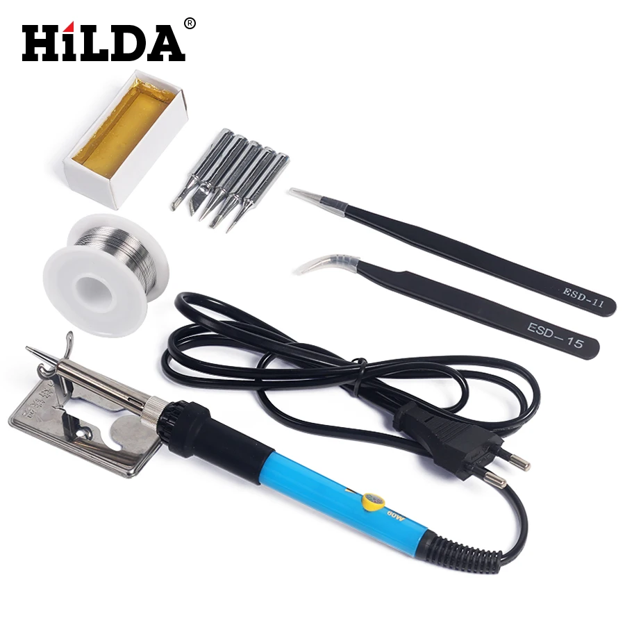 Special Offer HILDA EU Electric Soldering Iron With 5pcs Iron Tip and Tweezer Adjustable Temperature Solder Station Stand Solder Wire Tool Kit Discount 28% Today!