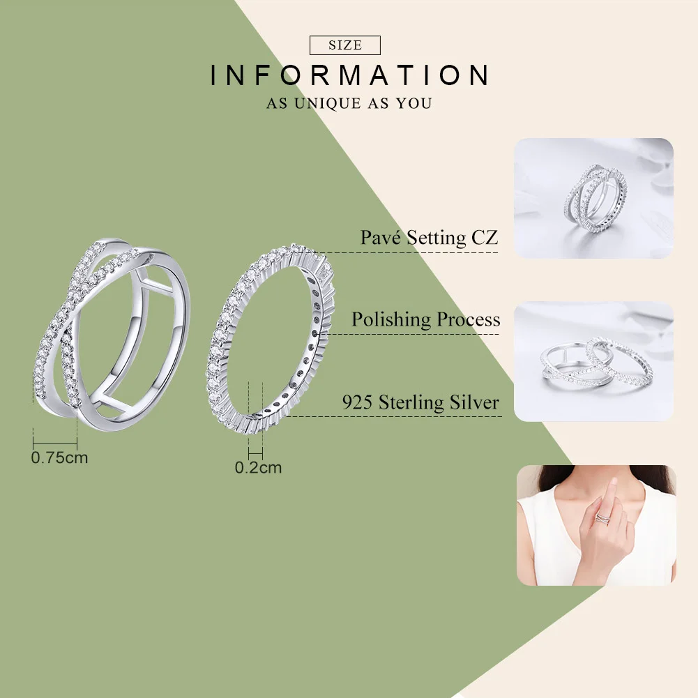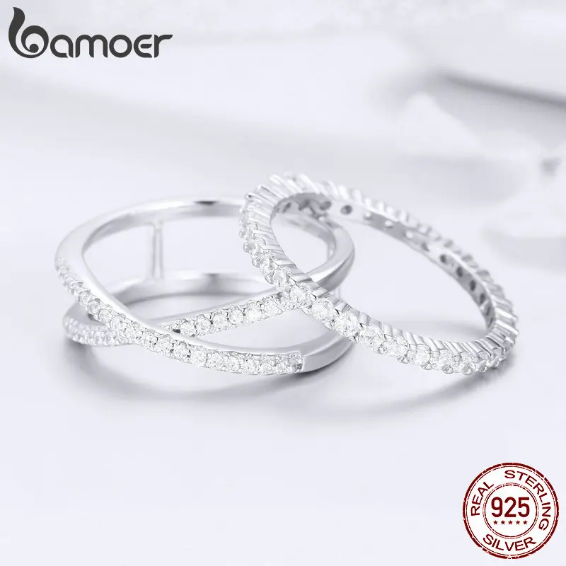 Special Offer BAMOER 2pcs Authentic 925 Sterling Silver Dazzling CZ Geometric Finger Rings for Women Wedding Engagement Jewelry anel SCR463 Discount 30% Today!