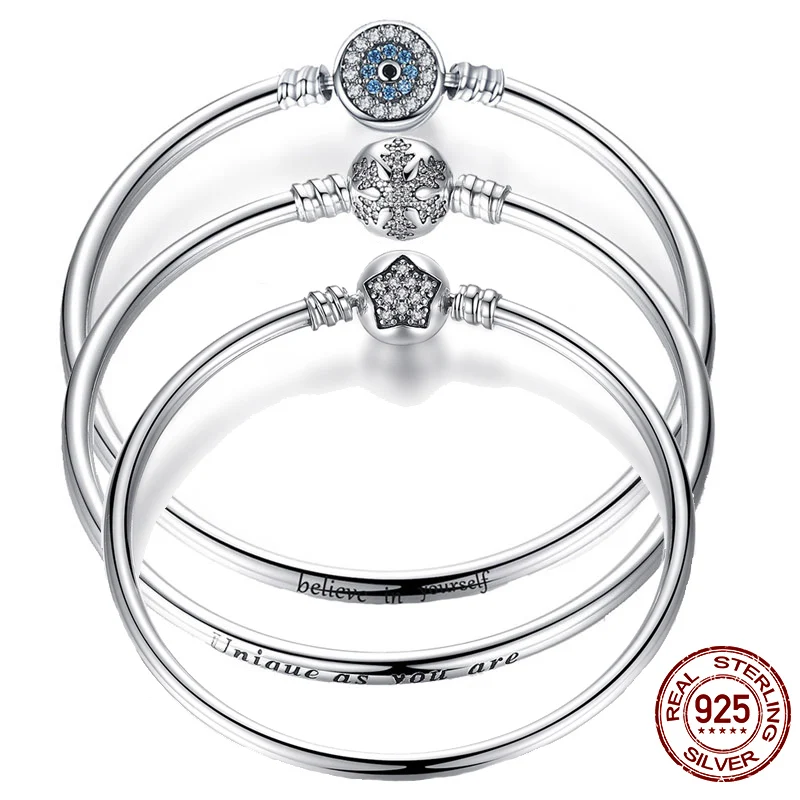 Special Offer BISAER 925 Sterling Silver Pulseira Snowflake Bangles 925 Heart Snake Chain Clasp femme Silver bracelet for Women Jewelry Discount 30% Today!