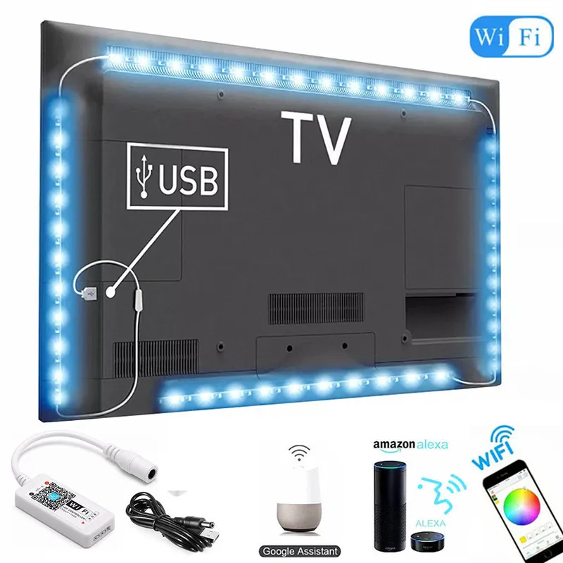 Special Offer DC 5V USB WIFI TV Light Computer Screen Back Bias Tape Light 5050 RGB LED TV Back Lighting Alexa Google Home Sound Smart Control Discount 30% Today!