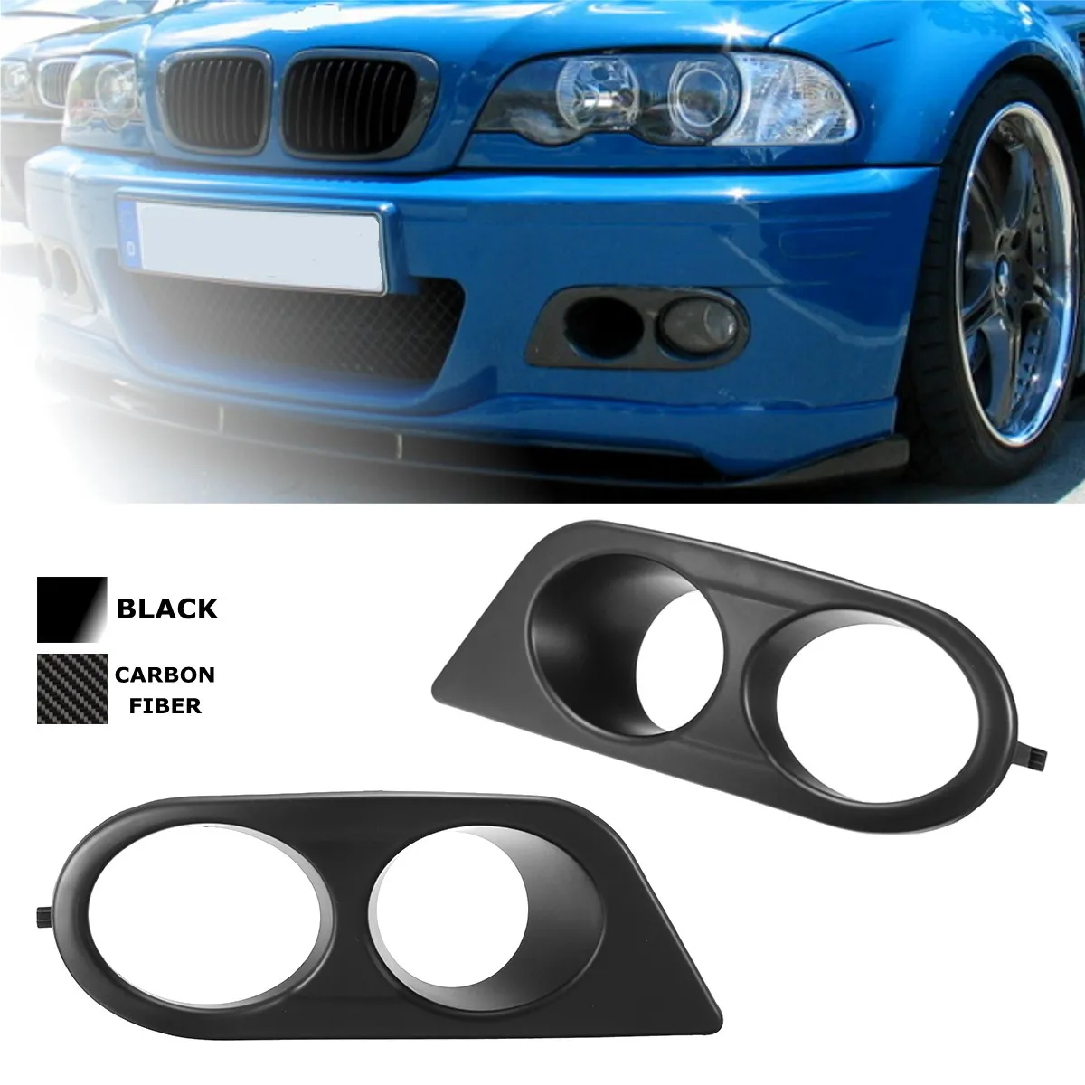 Special Offer Pair Car Fog Light Covers Surround Air Duct For BMW E46 M3 2001 2006 Carbon Fiber Glossy Black Discount 37% Today!