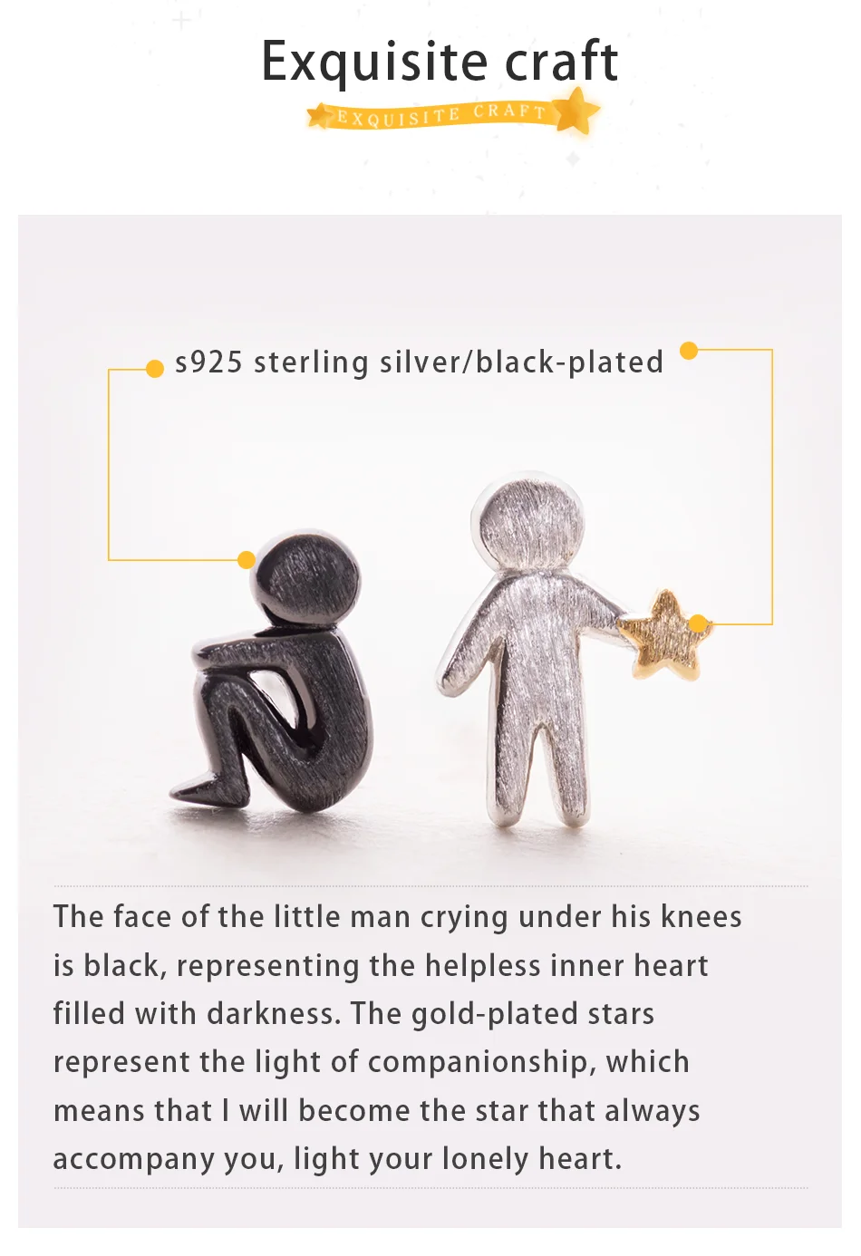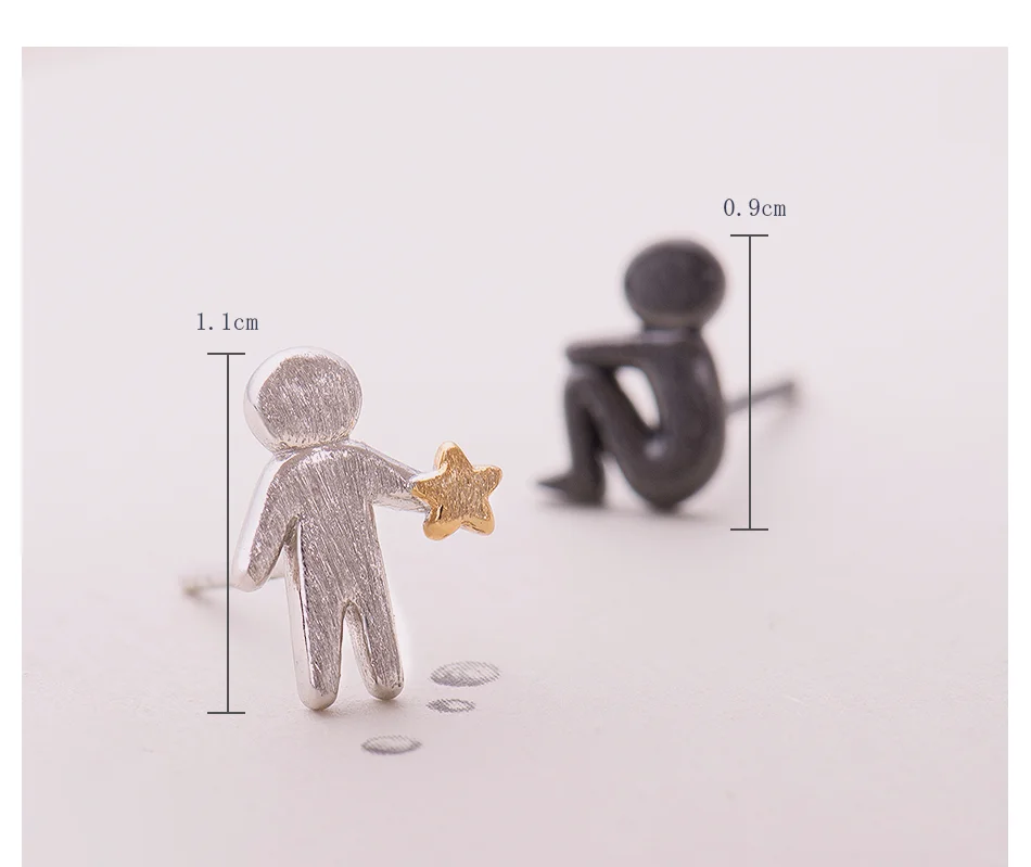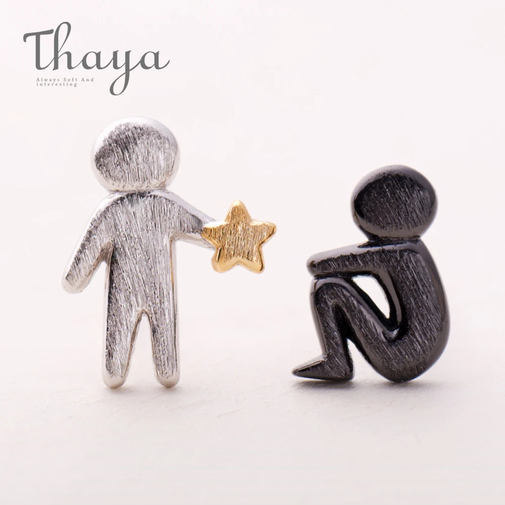 Special Offer Thaya Picking Gold Stars for You Design Stud Earrings s925 Silver Asymmetry Figure Earring for Women Elegant Texture Jewelry Discount 45% Today!