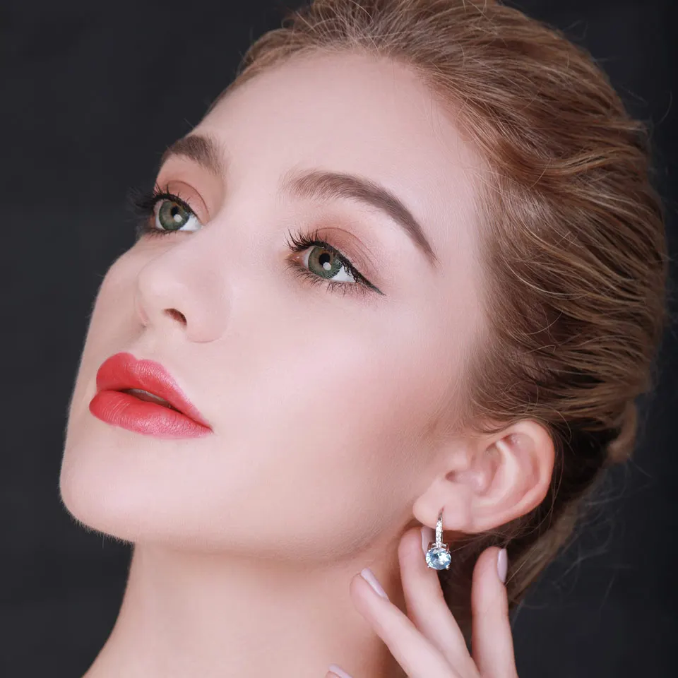 Best . (45% Off) Buy UMCHO Real 925 Sterling Silver Clip Earrings For Women Gemstone Sky Blue Topaz Female Earrings Round Wedding Valentine s Jewelry Price Online.