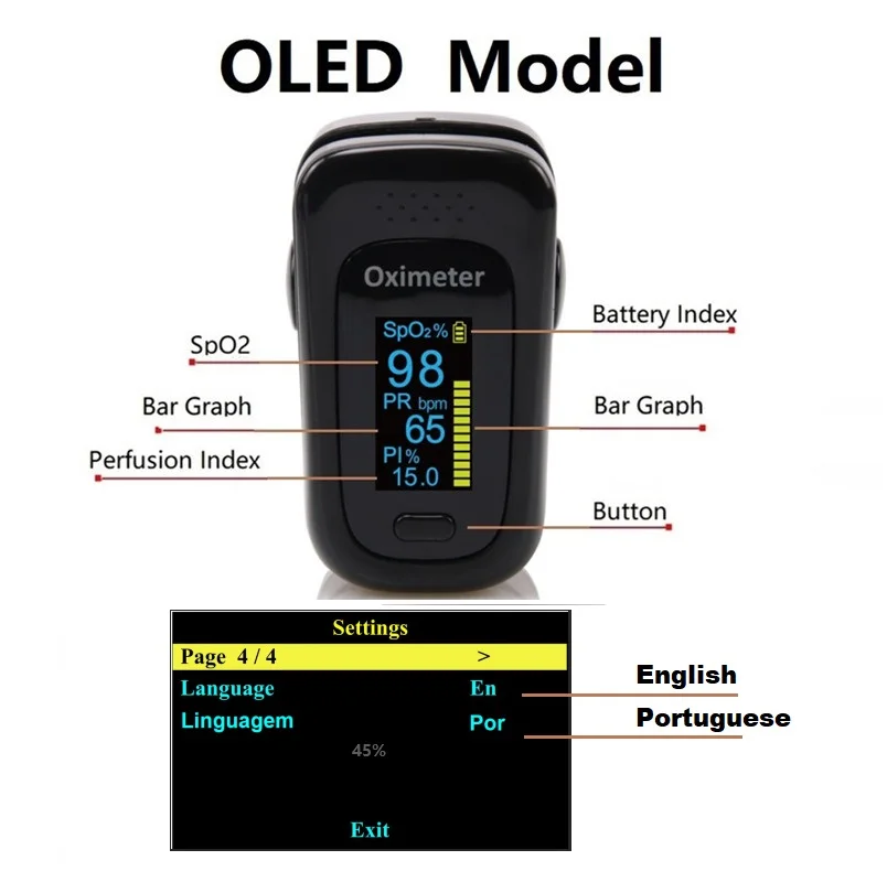 Special Offer Fingertip Pulse Oximeter finger De Pulso Dedo Home Pulse Oxymeter Pulsioximetro with English and Portuguese language CE OLED Discount 47% Today!