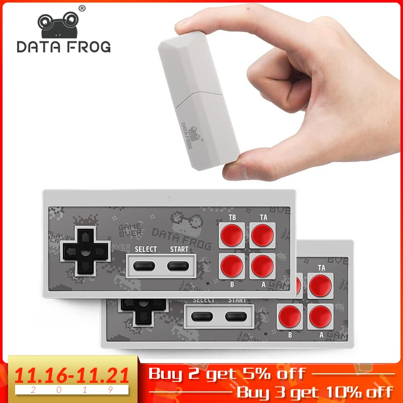 Special Offer DATA FROG Newest Retro Video Game Console 8 Bit Built in 600 Classic Games Mini Wireless Console AV Output Dual Gamepads Discount 48% Today!
