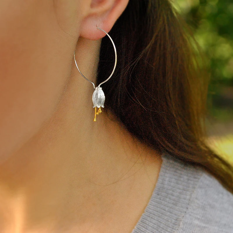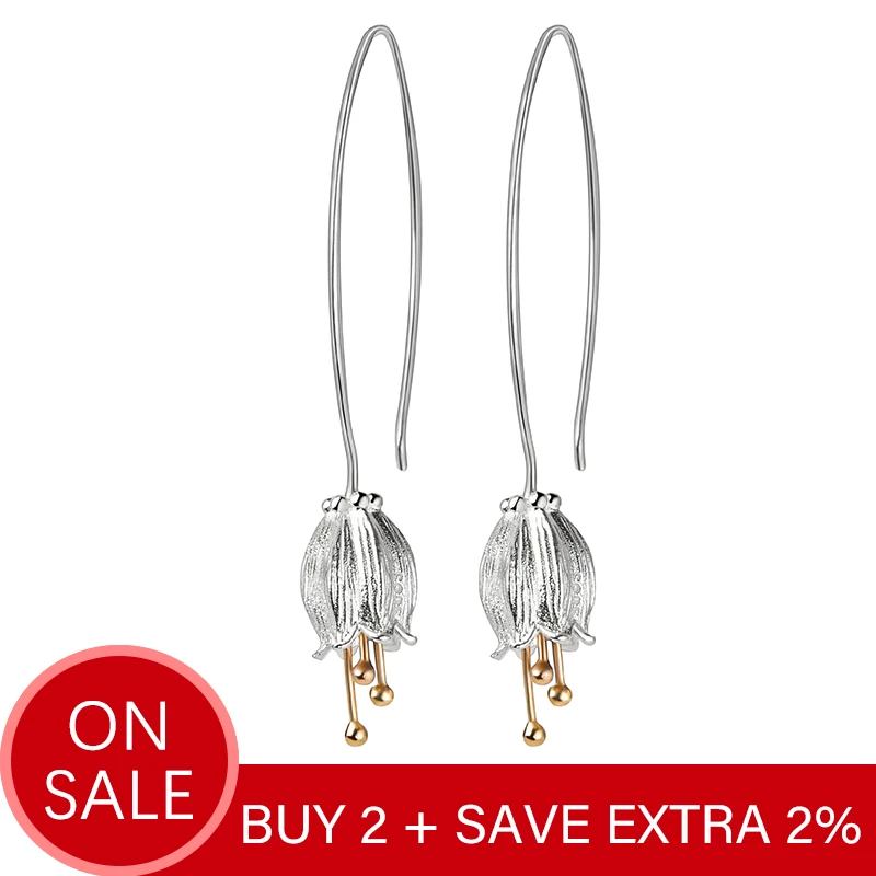 Special Offer Lotus Fun Real 925 Sterling Silver Earrings Natural Creative Fine Jewelry Fresh Bell Flower Dangle Earrings for Women Brincos Discount 50% Today!
