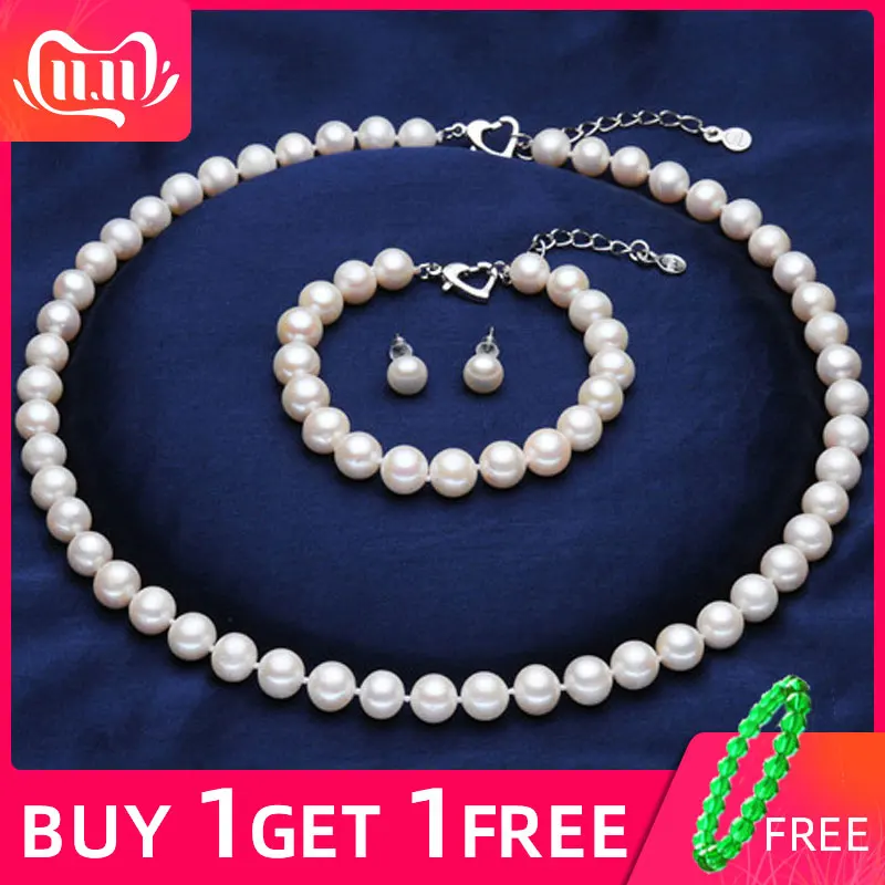 Best . (50% Off) Buy ZHIXI Pearl Jewelry Sets For Women Fine Jewelry Natural Pearl Choker Necklace Bracelet Earrings 8 9mm Near Round Trendy GiftT023 Price Online.