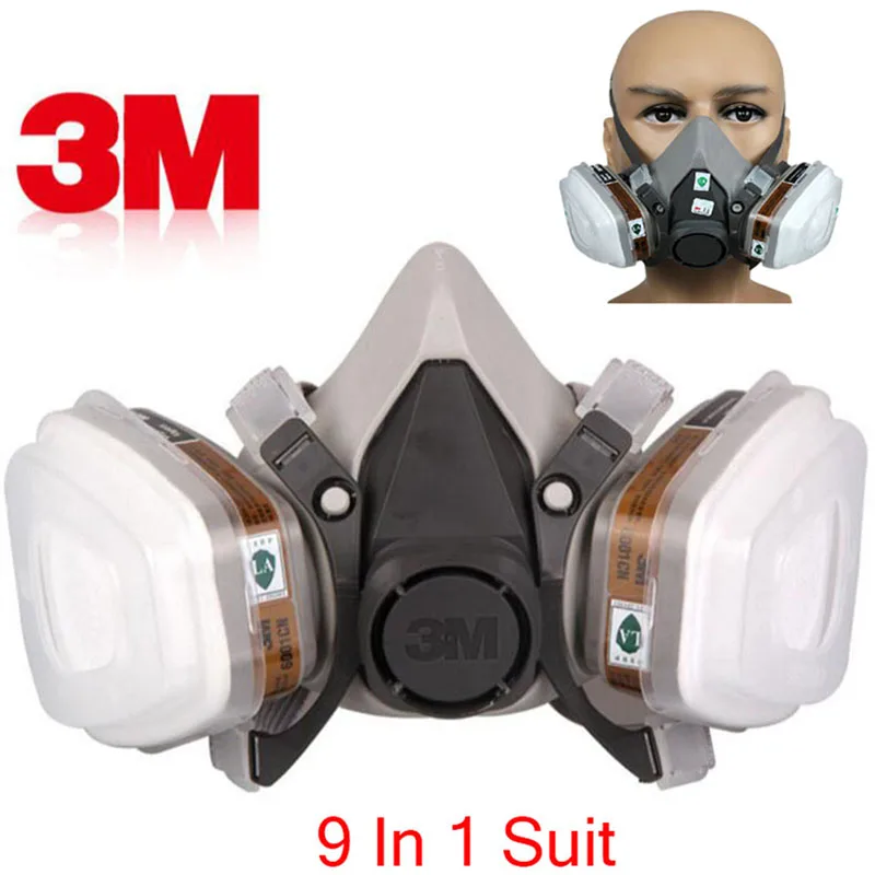 Special Offer 9 in 1 Suit Half Face Gas Mask Respirator Painting Spraying Dust Mask For 3 M 6200 N95 PM2.5 gas Mask Discount 10% Today!