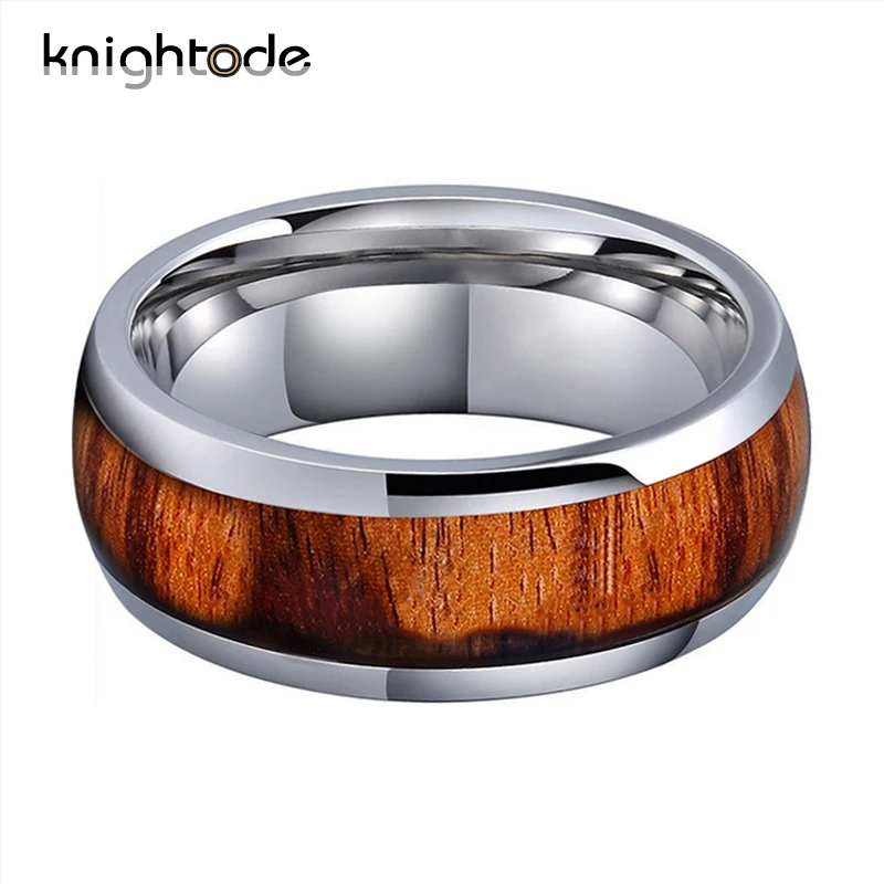Special Offer 8mm Mens Domed Koa Nature Wood Inlay Silver Tungsten Carbide Ring Polished Shiny Women Wedding Band Discount 20% Today!