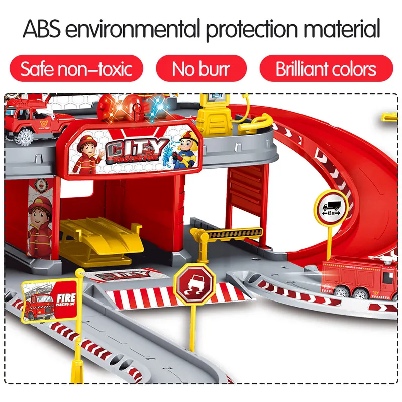 Special Offer 3D City Police Station Railway Alloy Car Play Engineering Fire Truck Track Car DIY Model Building Kits Assembly toys for kids Discount 35% Today!