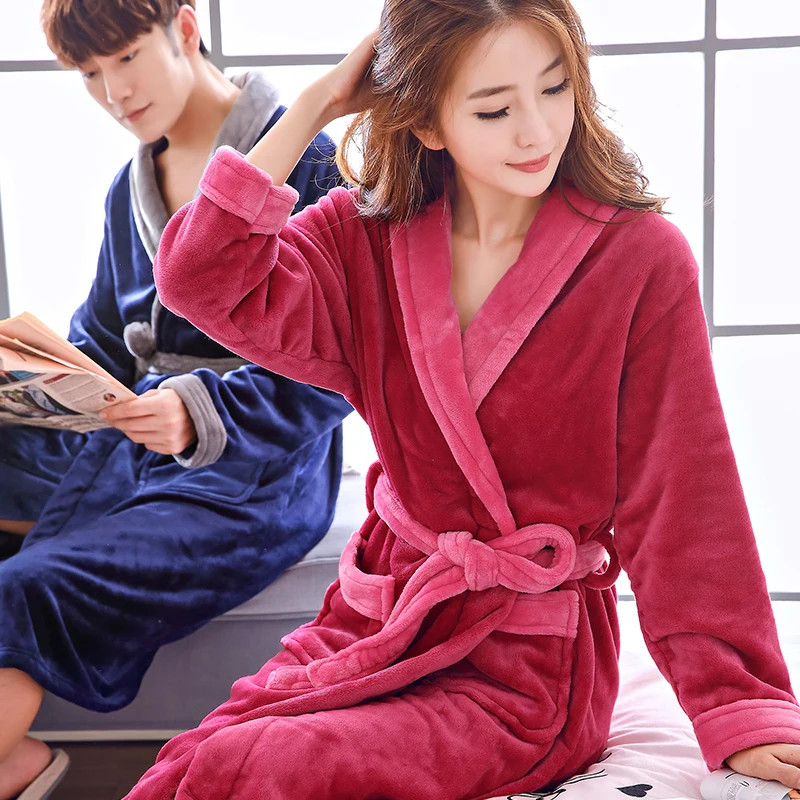 Special Offer Lovers Coral Fleece Robe Autumn Winter Warm Sleepwear Women Men Thicken Bathrobe Lounge Nightgown Home Clothes M L XL XXL Discount 39% Today!