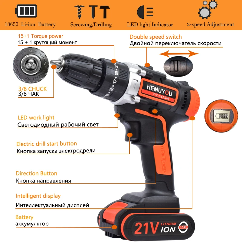 Special Offer 21V Electric Screwdriver Handheld Wireless Rechargeable Electric Drill Impact Drill lithium Battery Power Tool + Smart Display Discount 40% Today!