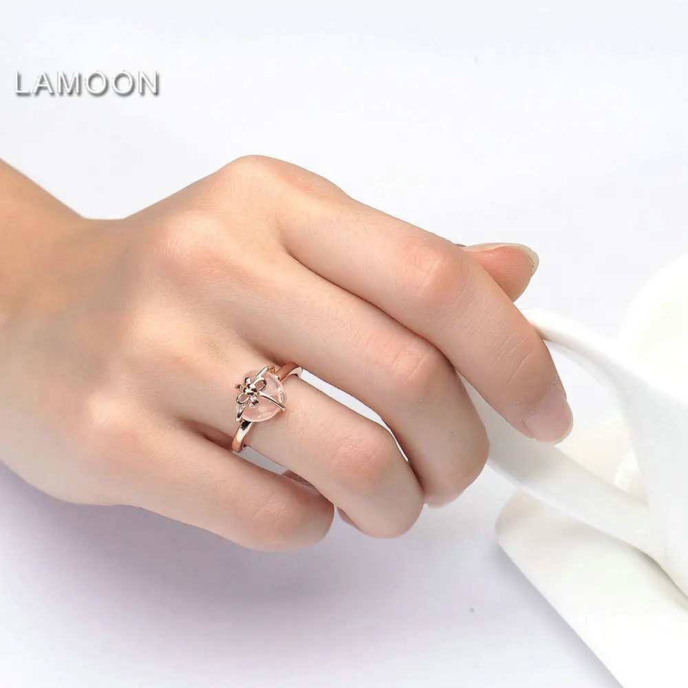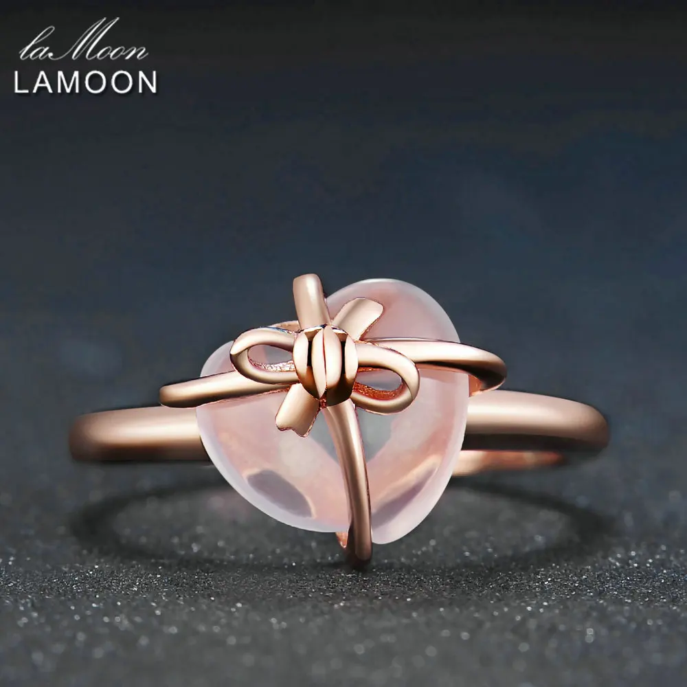 Best . (40% Off) Buy LAMOON 925 Sterling Silver Ring Gemstone Rose Quartz 18K Rose Gold Fine Jewelry Heart Bowknot Wedding Band LMRI051 Cheap Online.