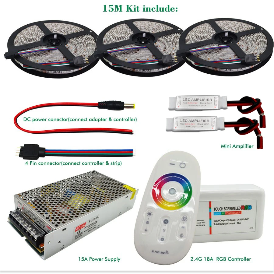 Special Offer 5050 RGBW RGBWW Flexible LED Strip Set With 2.4G Touch RF Remote Controller+12V Power Supply Adapter+Amplifier 5M 10M 15M 20M Discount 41% Today!