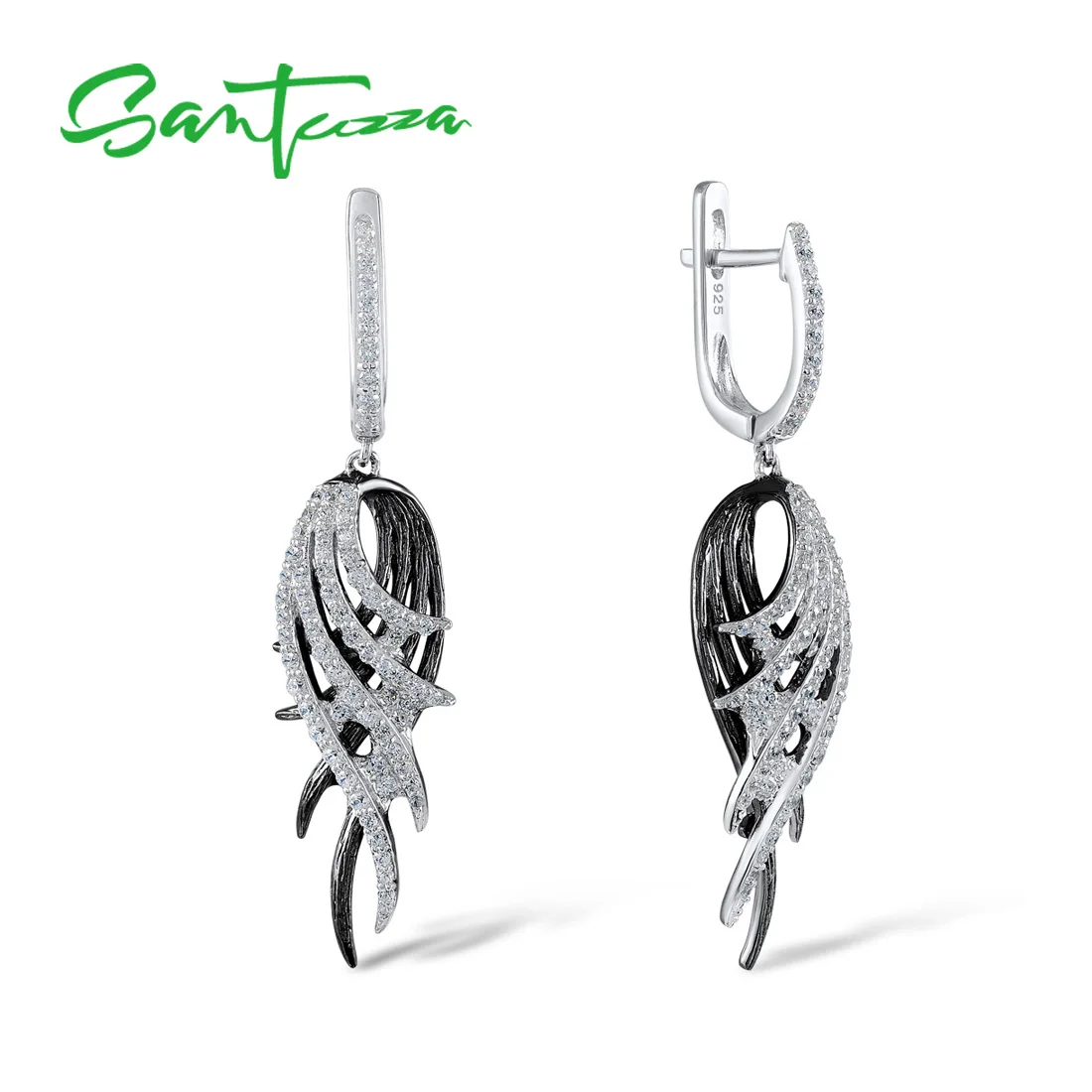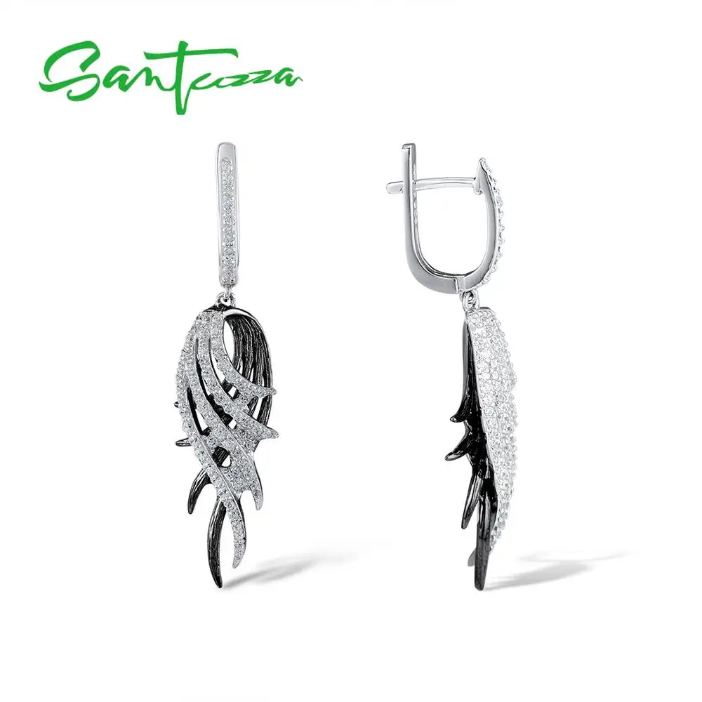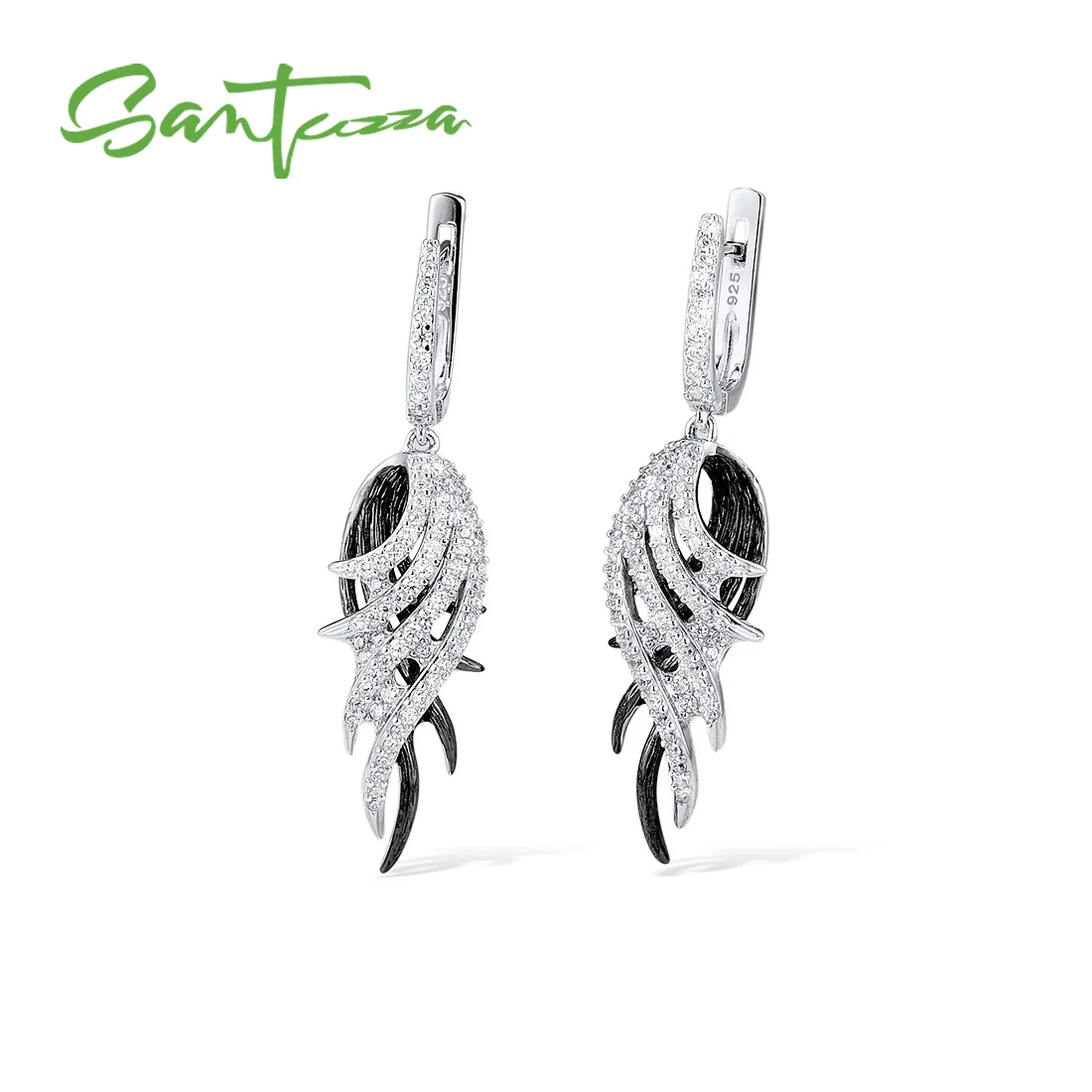 Special Offer SANTUZZA Silver Feather Drop Earrings For Women 925 Sterling Silver Earrings Black White Feather серьги Fashion Jewelry Discount 49% Today!