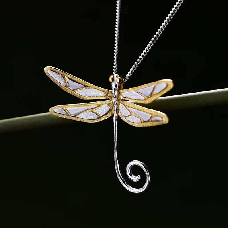 Special Offer Lotus Fun Real 925 Sterling Silver Natural Handmade Fine Jewelry 18K Gold Cute Dragonfly Pendant without Necklace for Women Gift Discount 50% Today!